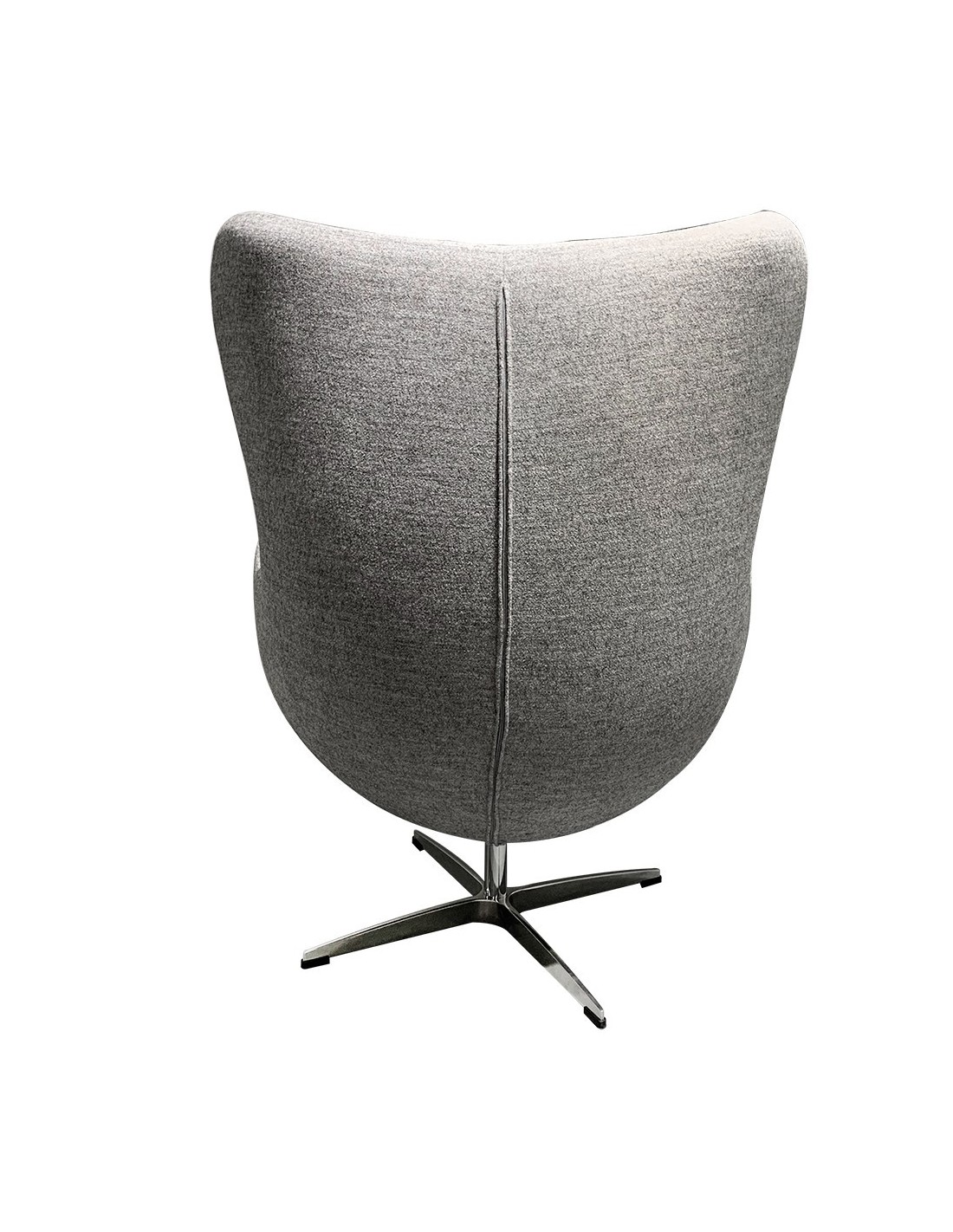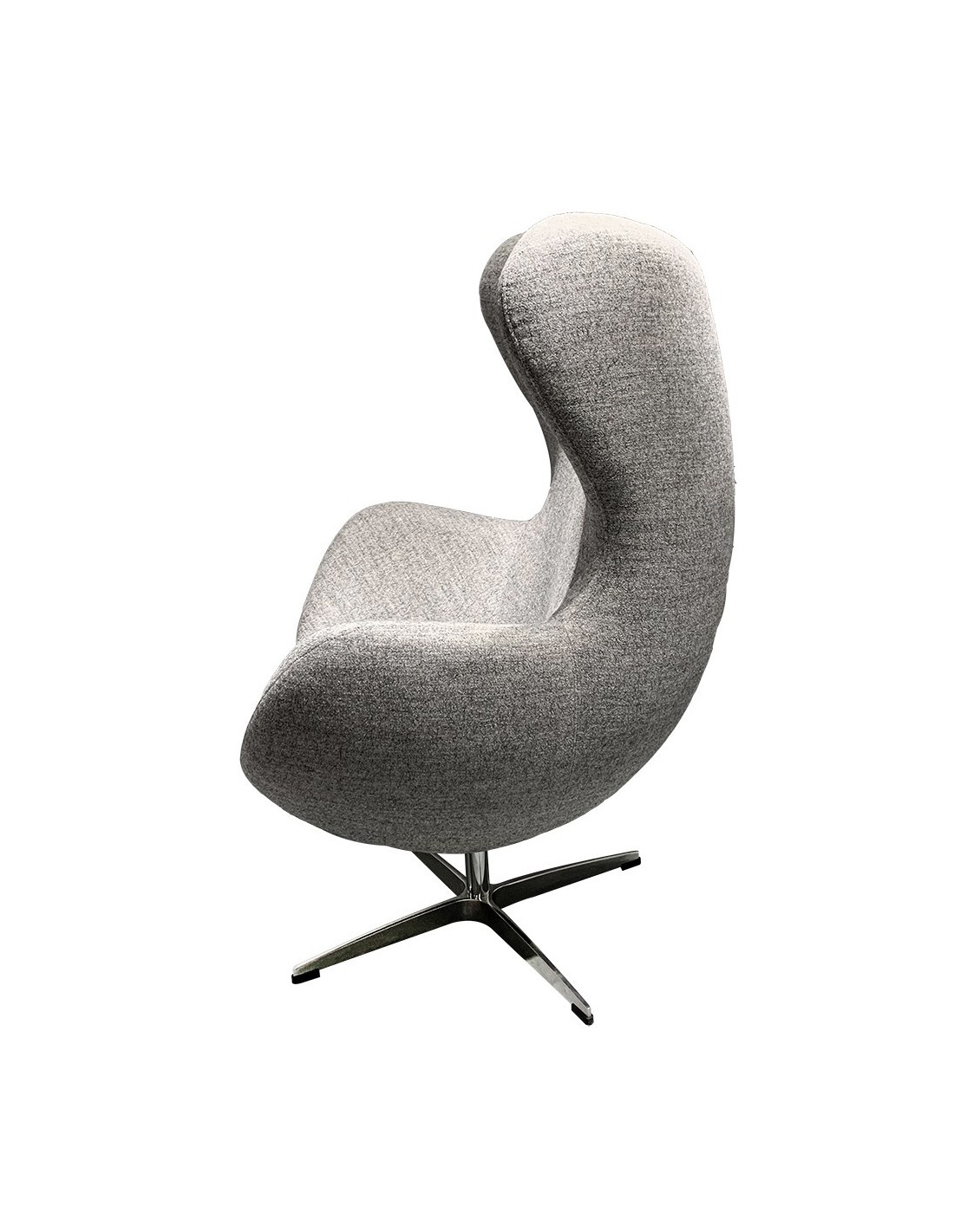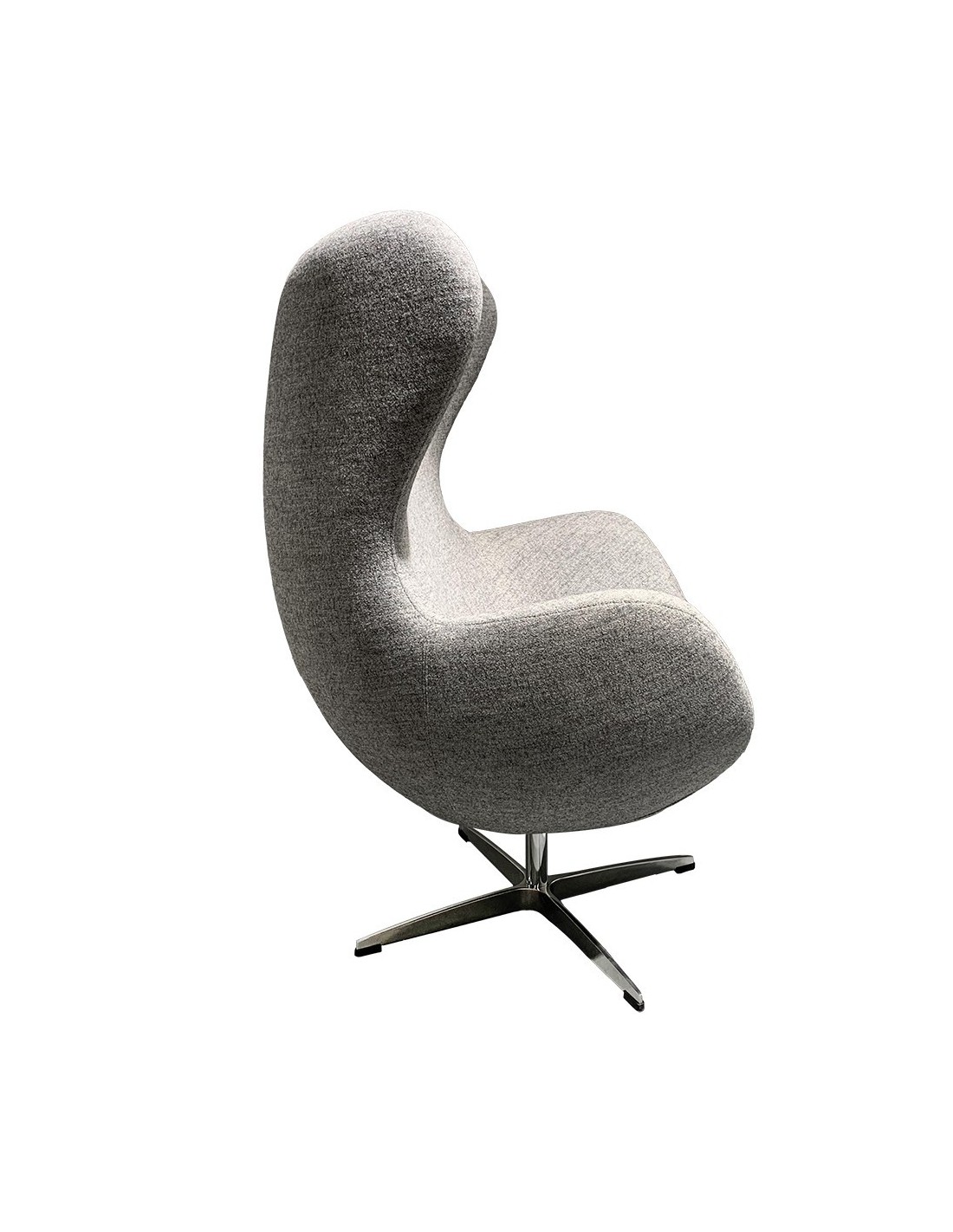 Sillón de diseño, giratorio, base y columna cromada, tapizado en tejido cachemira gris 51. Otros colores disponibles.