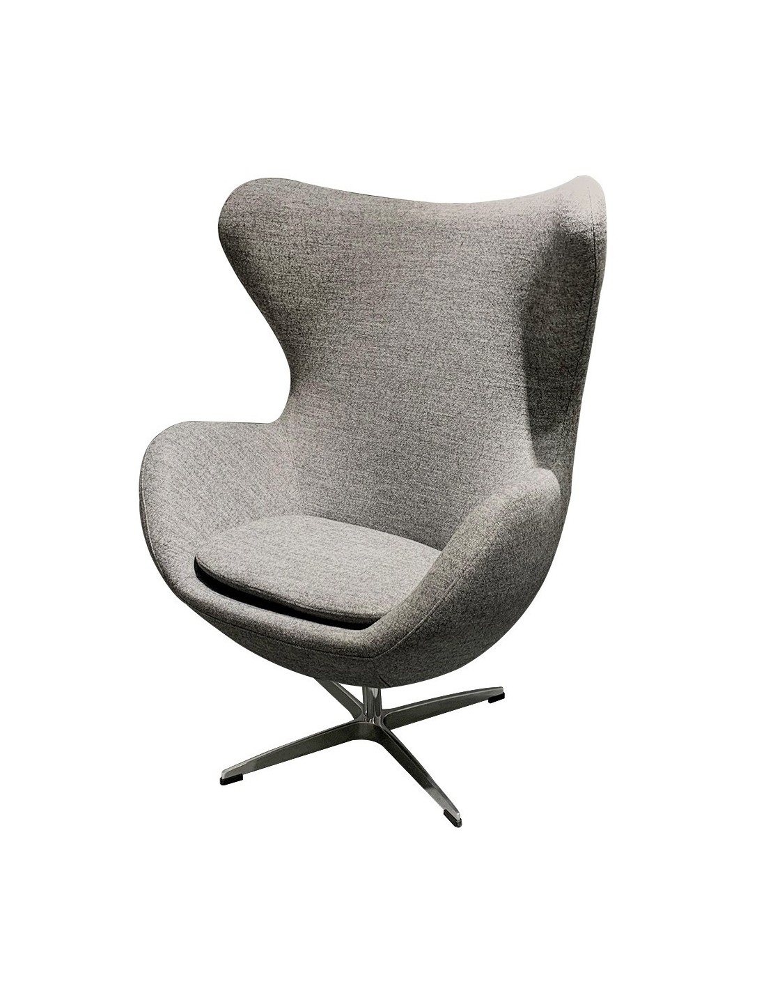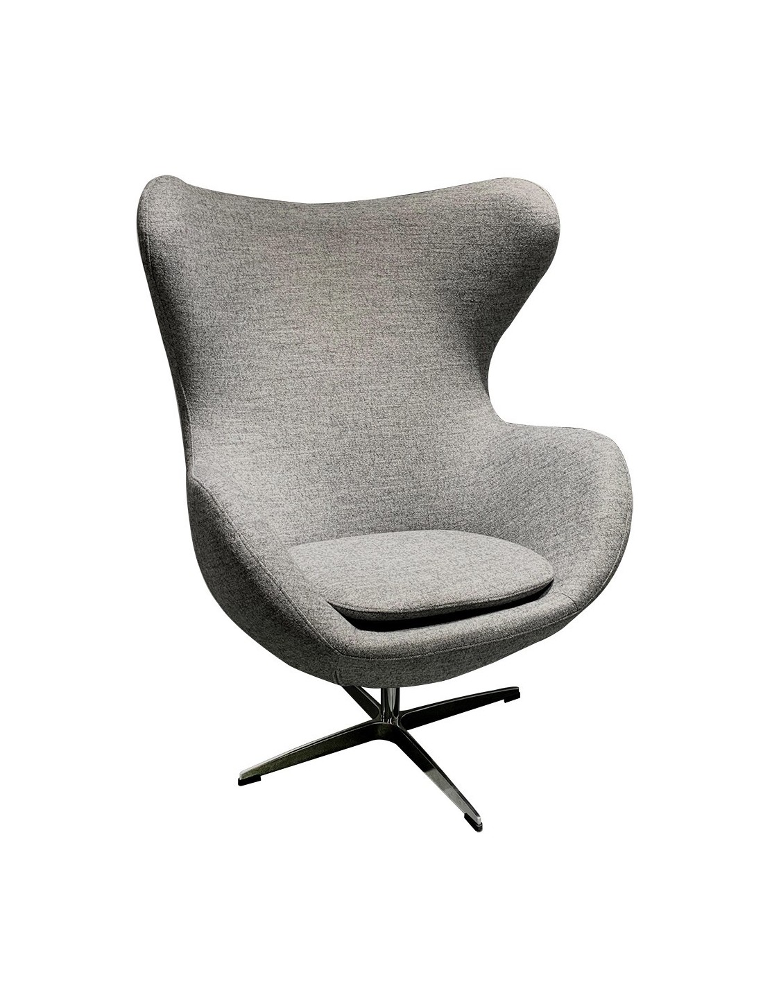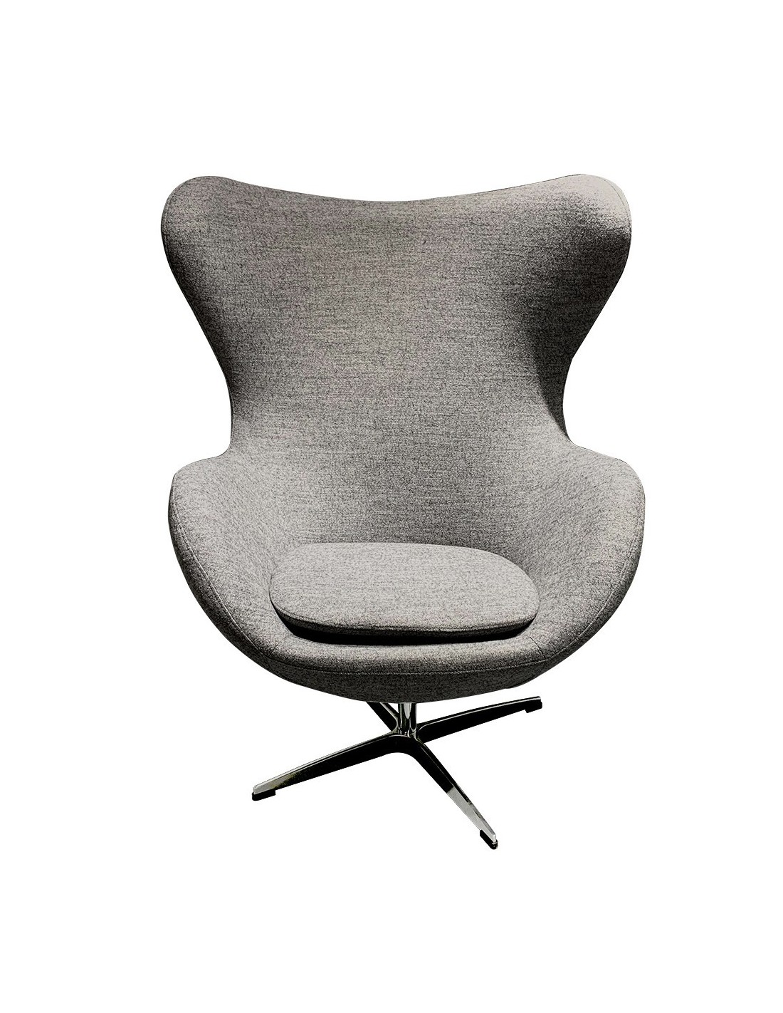 Sillón de diseño, giratorio, base y columna cromada, tapizado en tejido cachemira gris 51. Otros colores disponibles.