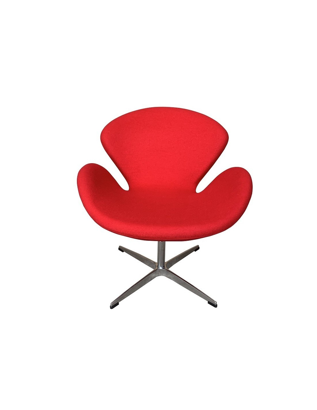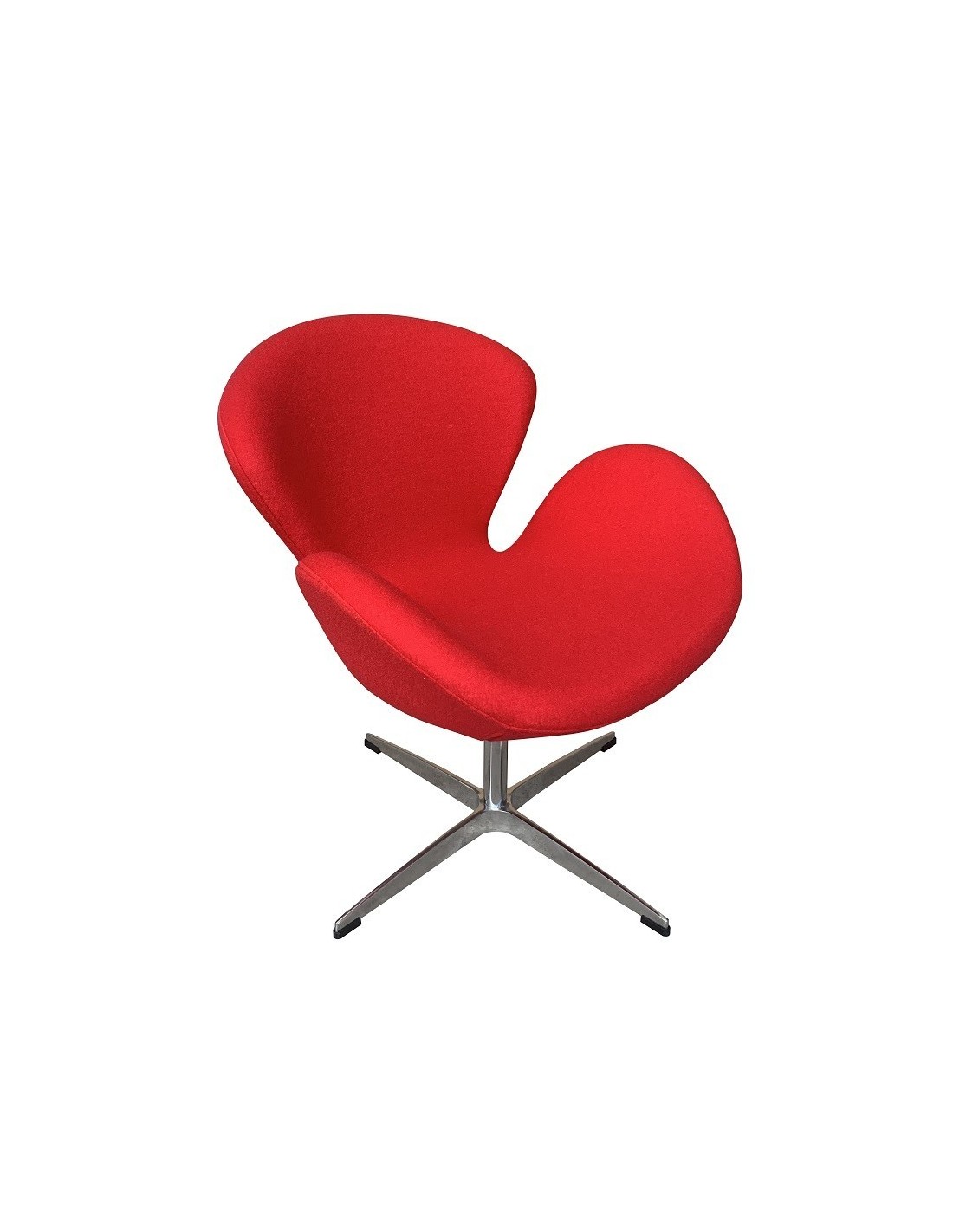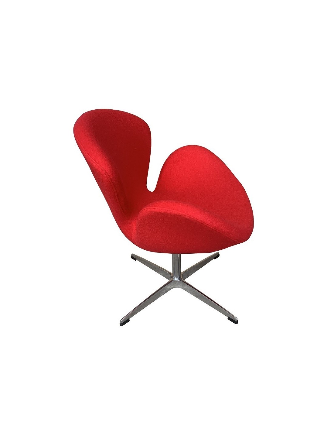 Sillón de diseño, giratorio, base de aluminio, tapizado en tejido cachemira rojo. Otros colores disponibles.