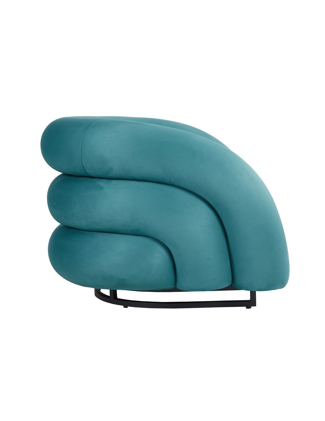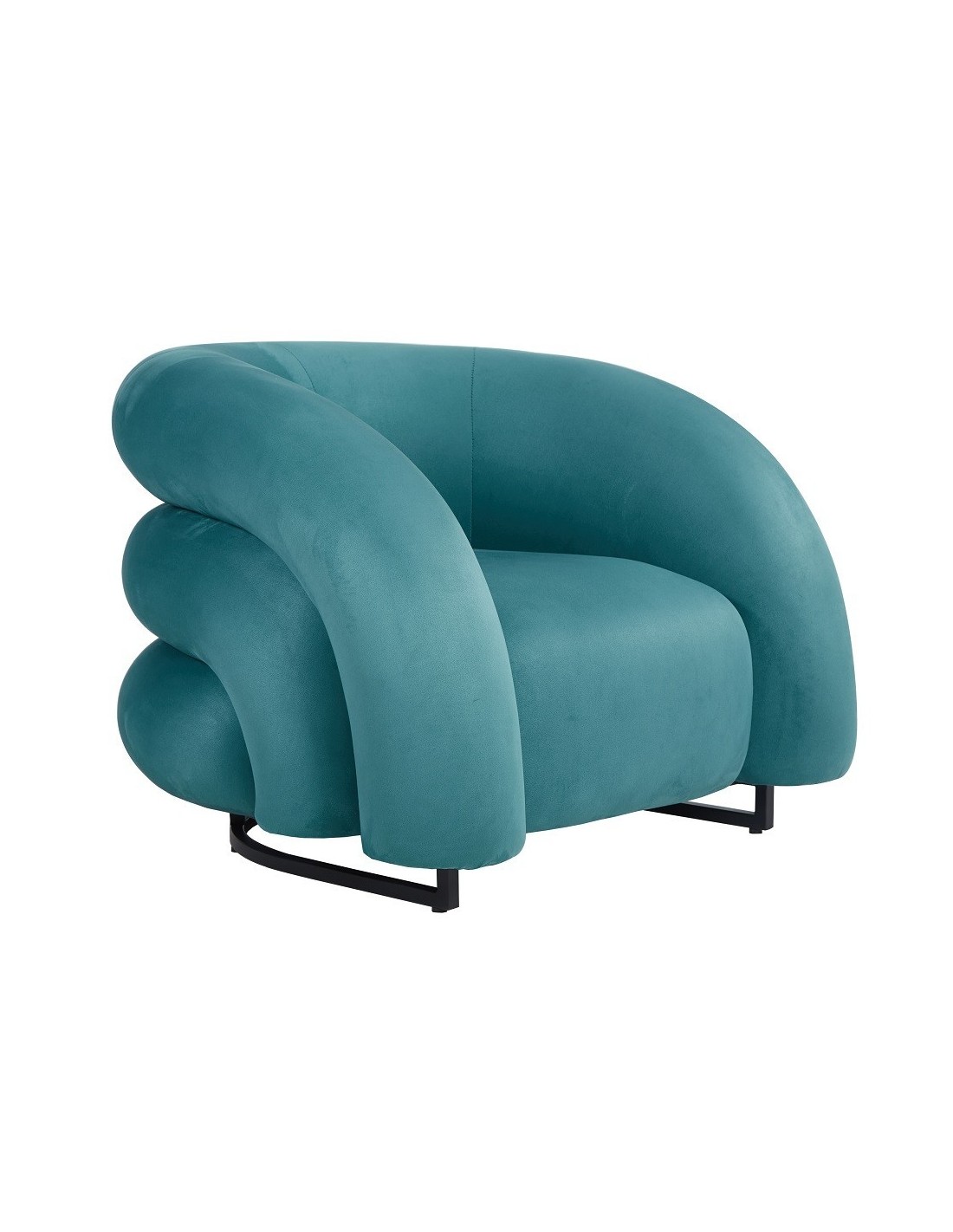 Sillón de diseño, tapizado en tejido velvet de color turquesa. Otros colores disponibles.