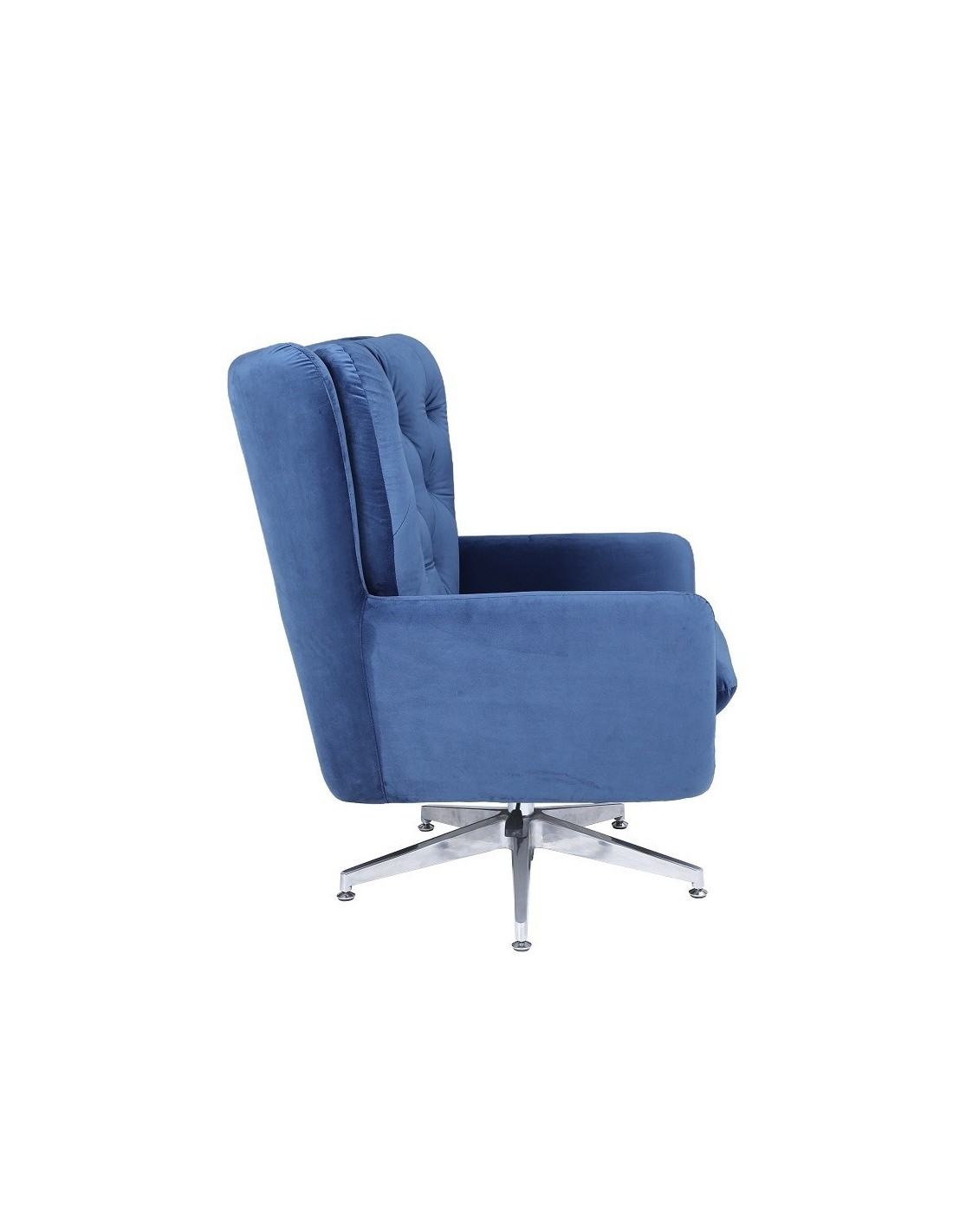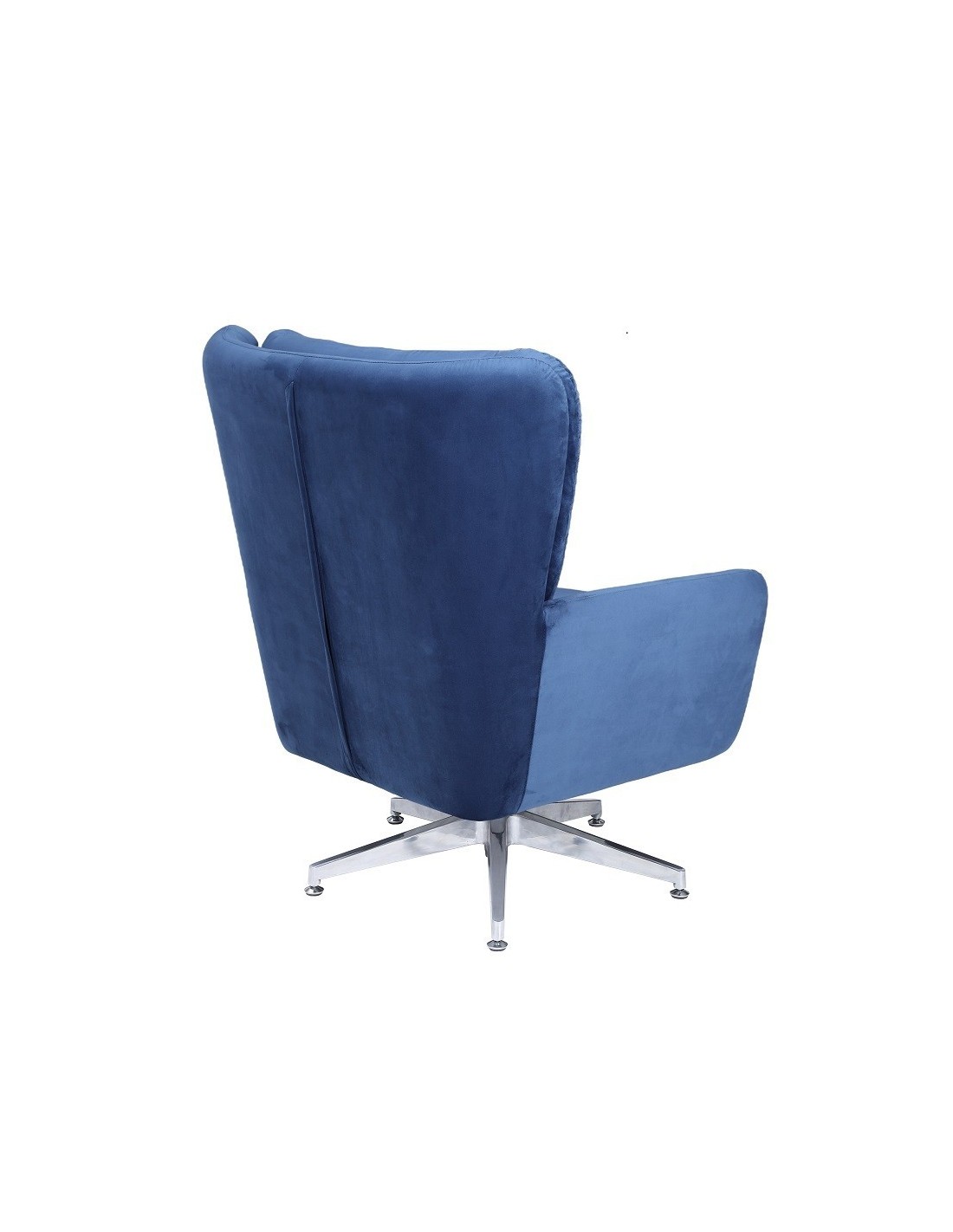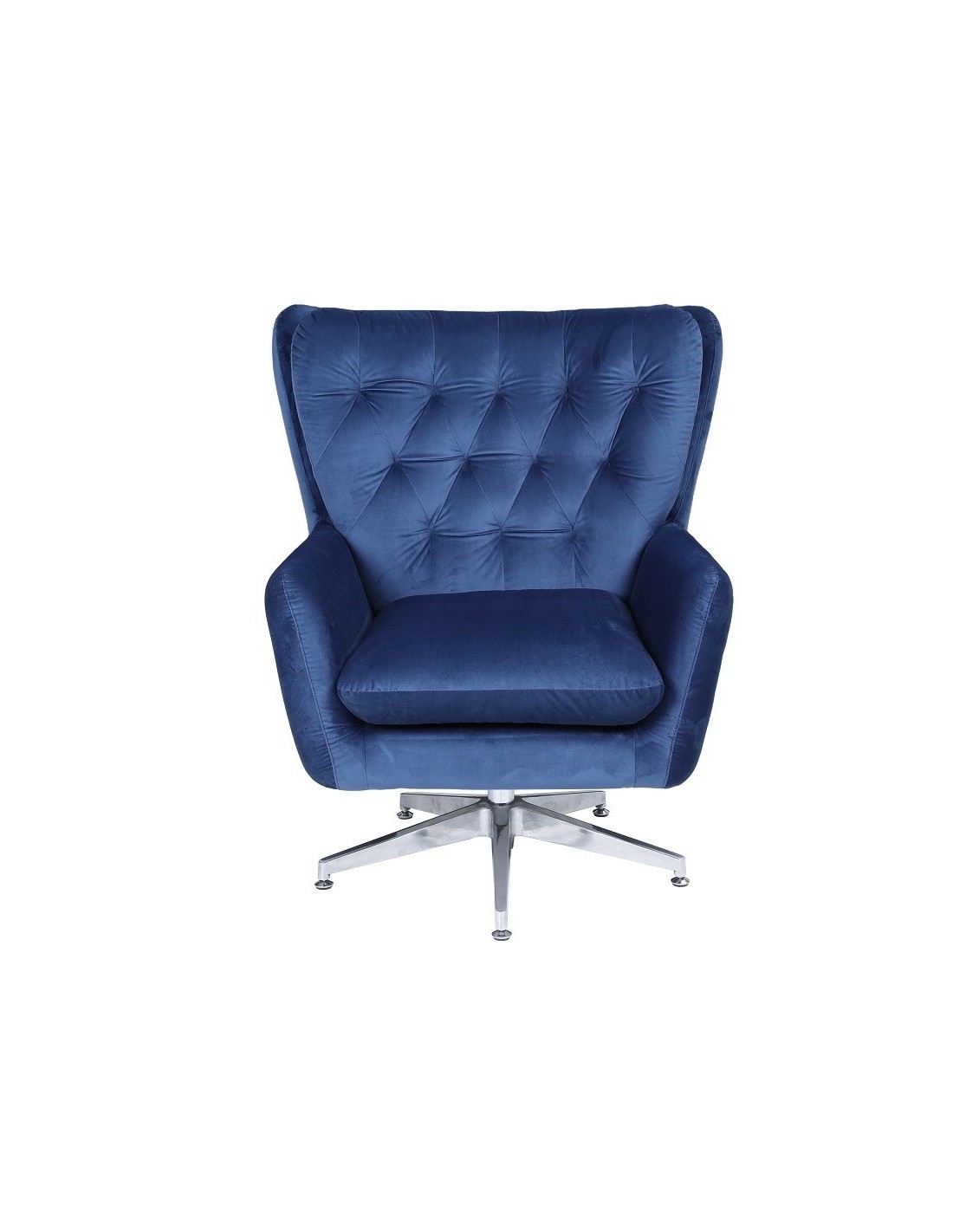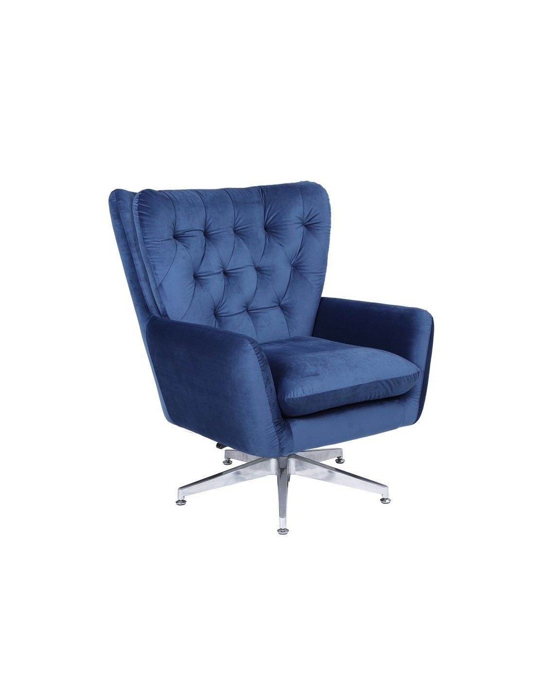 Sillón de diseño, giratorio, regulable en altura, tapizado en tejido velvet de color azul. Otros colores disponibles.