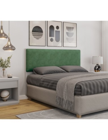 Cabecero de diseño, MDP blanco, tapizado en tejido velvet verde. Otros acabados disponibles.
