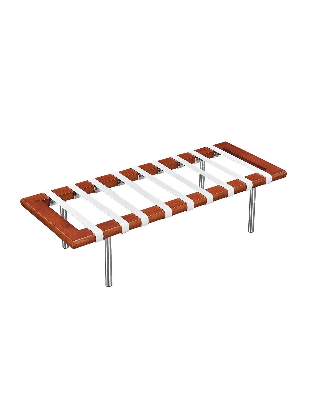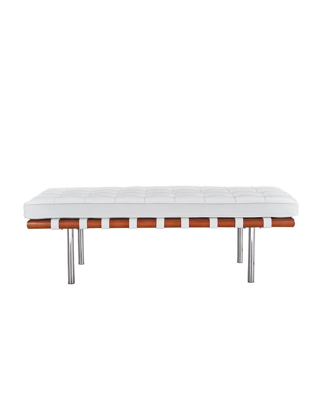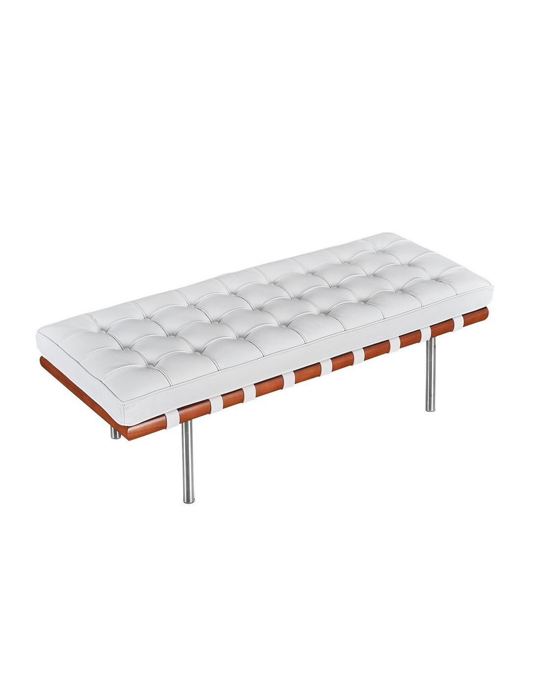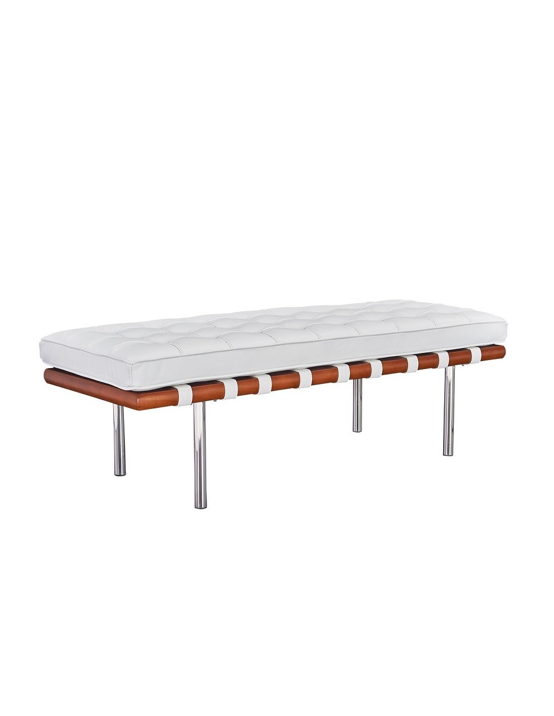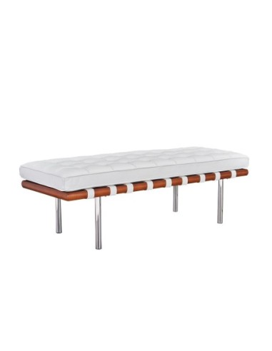 Banco de diseño, madera, acero inoxidable, tapizado similpiel blanca. Otros colores disponibles.