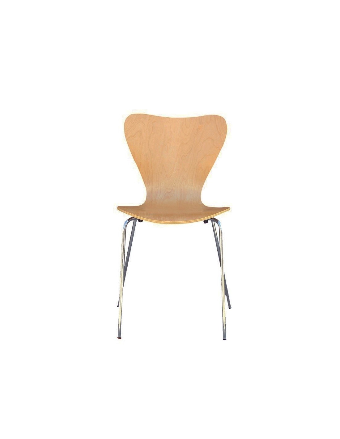 Silla multiusos, apilable, cromada, acabado barnizado natural. Otros colores disponibles.