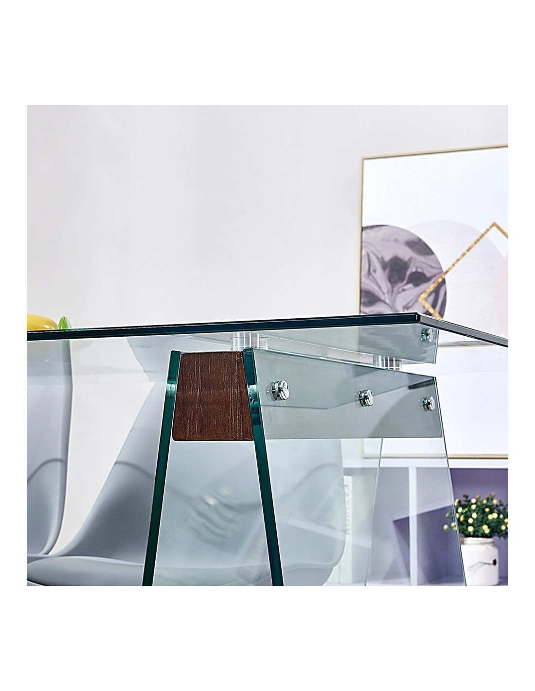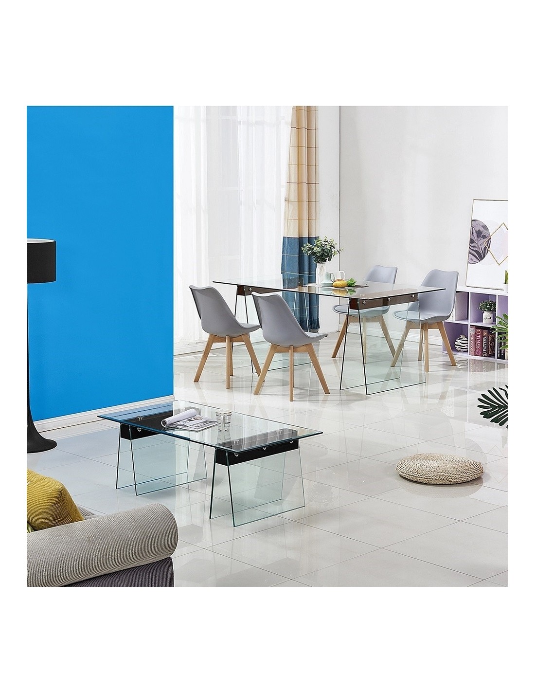 Mesa de diseño, multiusos, madera, cristal templado con acabado transparente. Mesa baja de centro a juego