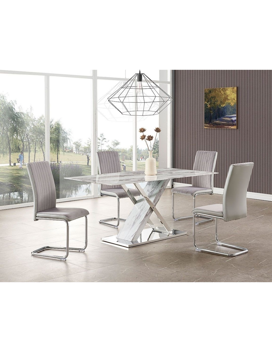 Mesa rectangular, de comedor, acero inoxidable, DM, tapa de cristal templado