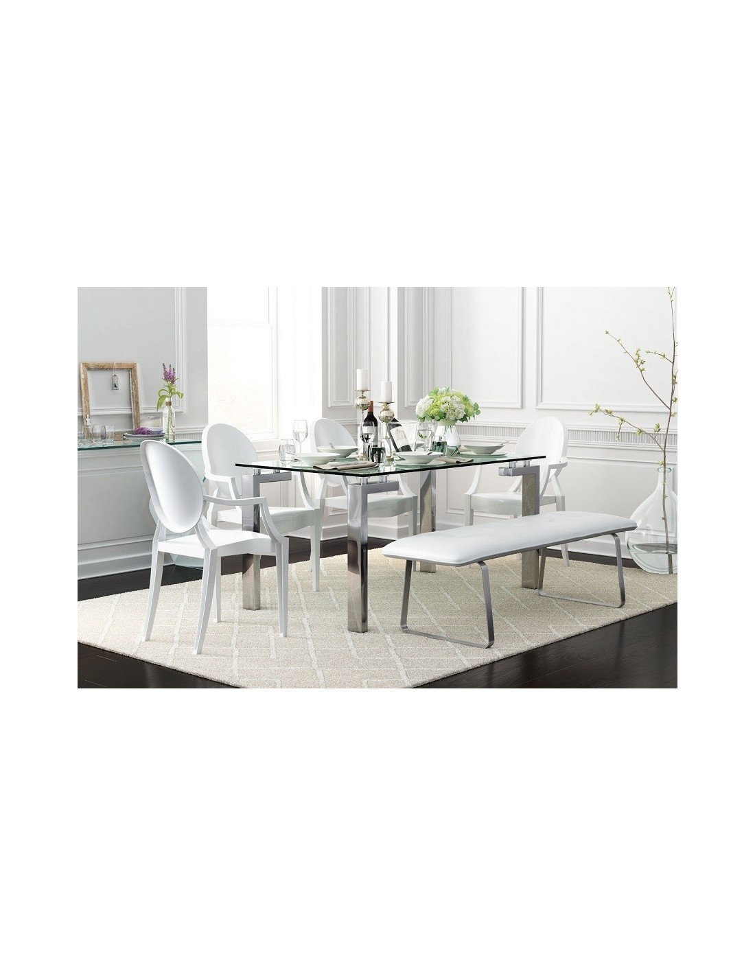 Mesa LAINEY 140 (M), cromada, cristal, 140x80 cms