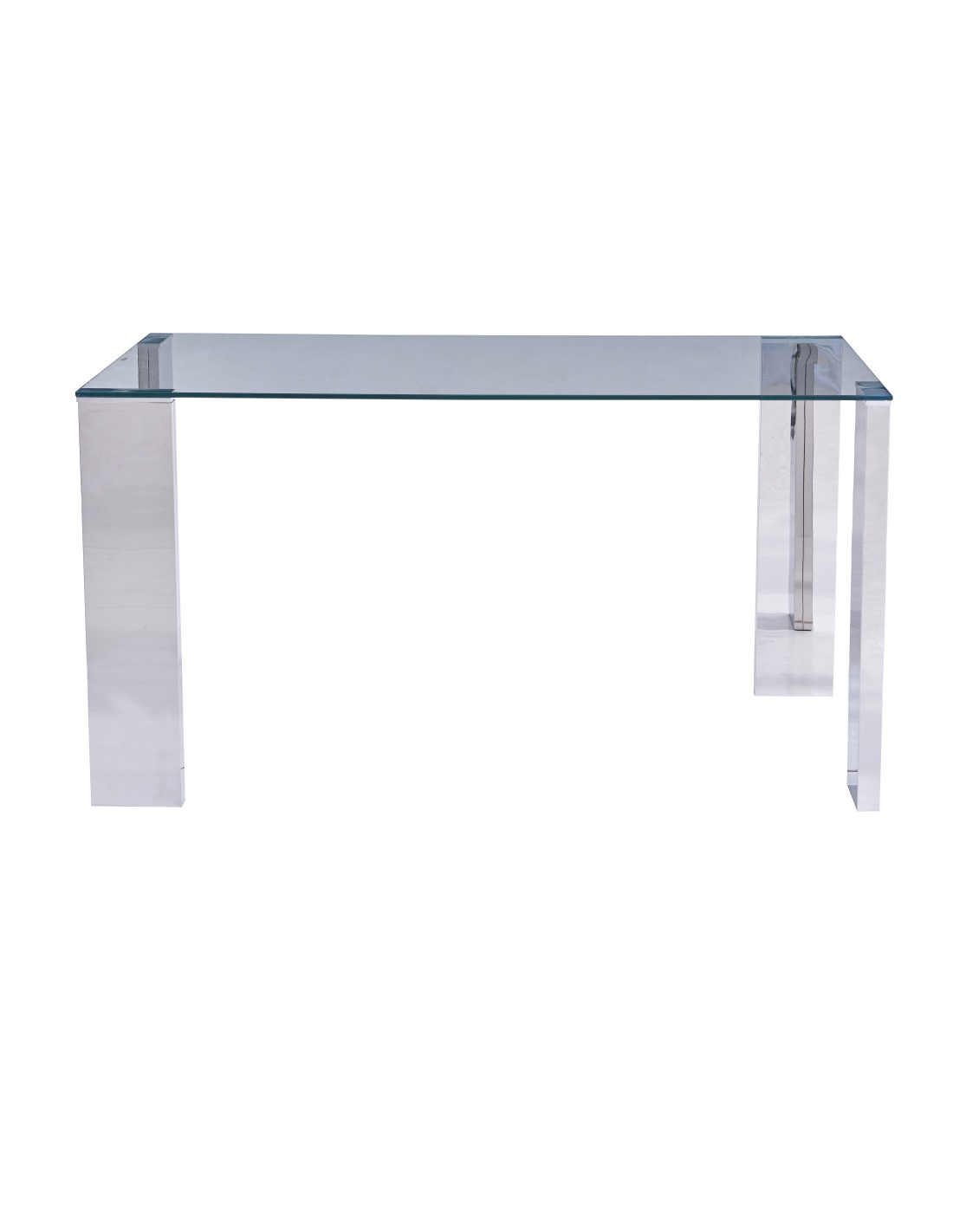 Mesa rectangular, de comedor, acero inoxidable, cristal templado transparente