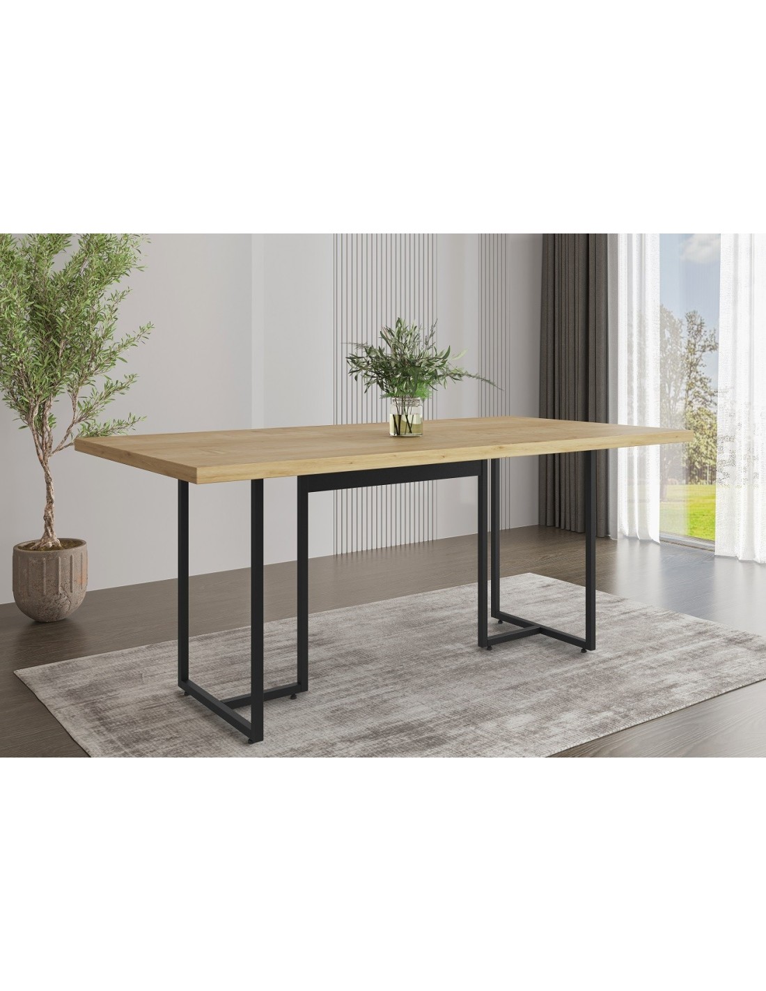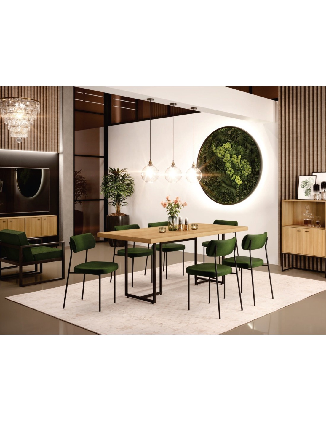 Mesa de comedor, base de acero inoxidable y acrílica, tapa de cerámica con acabado mármol blanco mate