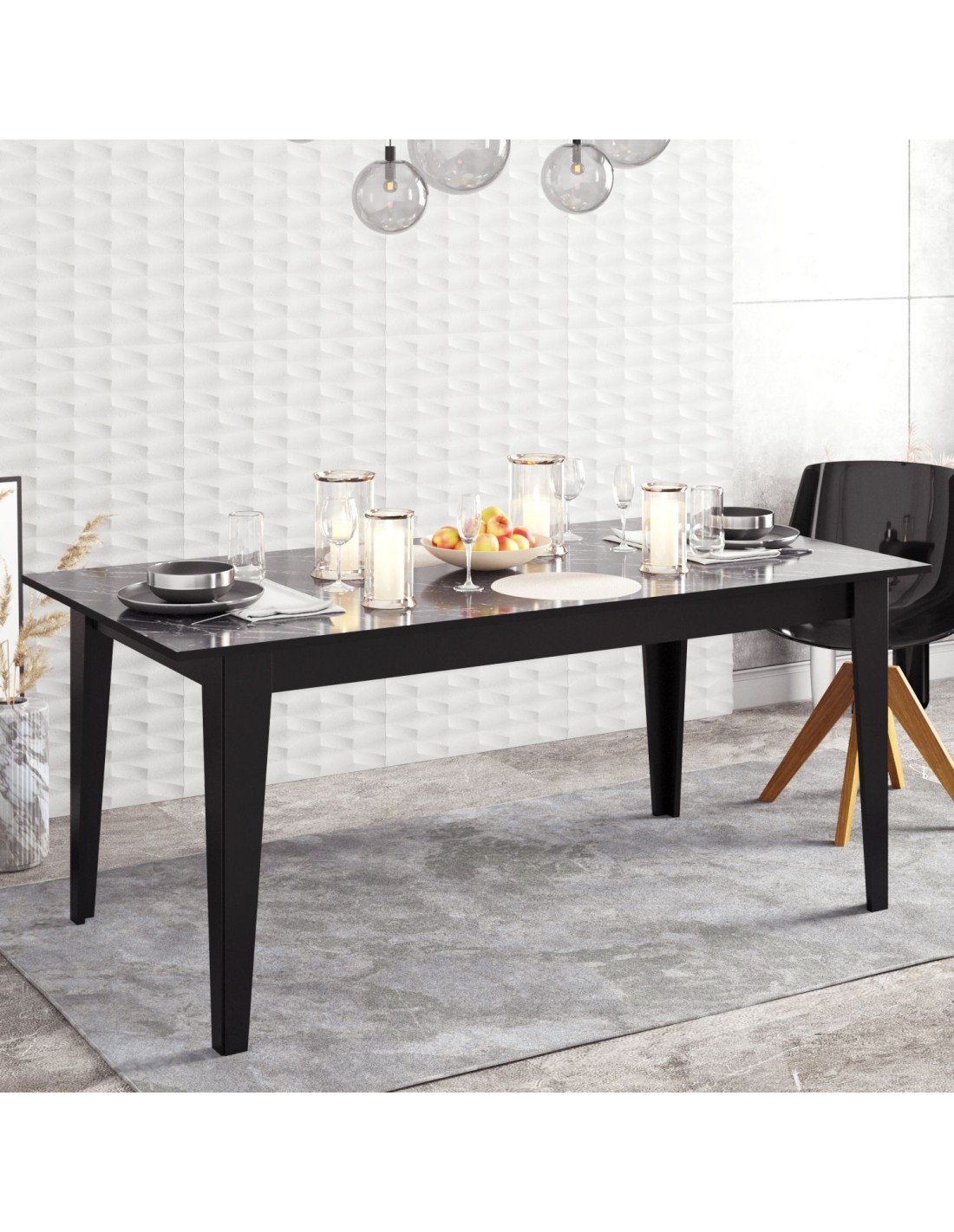 Mesa de comedor SIENA, biIaminado mármol negro, 180 x 90 cms.
