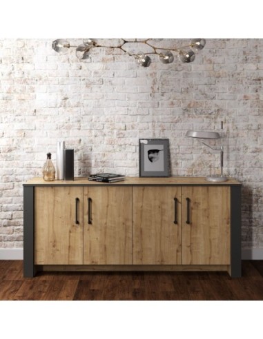 Aparador PHILIPPA, biIaminado roble con gris oscuro, 180 cms.