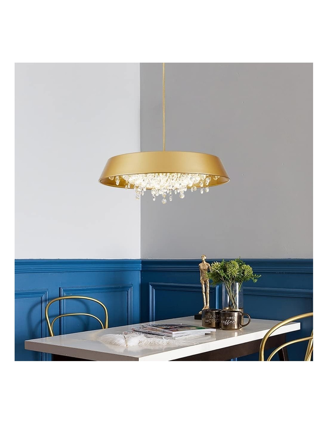 Lámpara JENA DO, colgante, metal, dorada, cristal, led