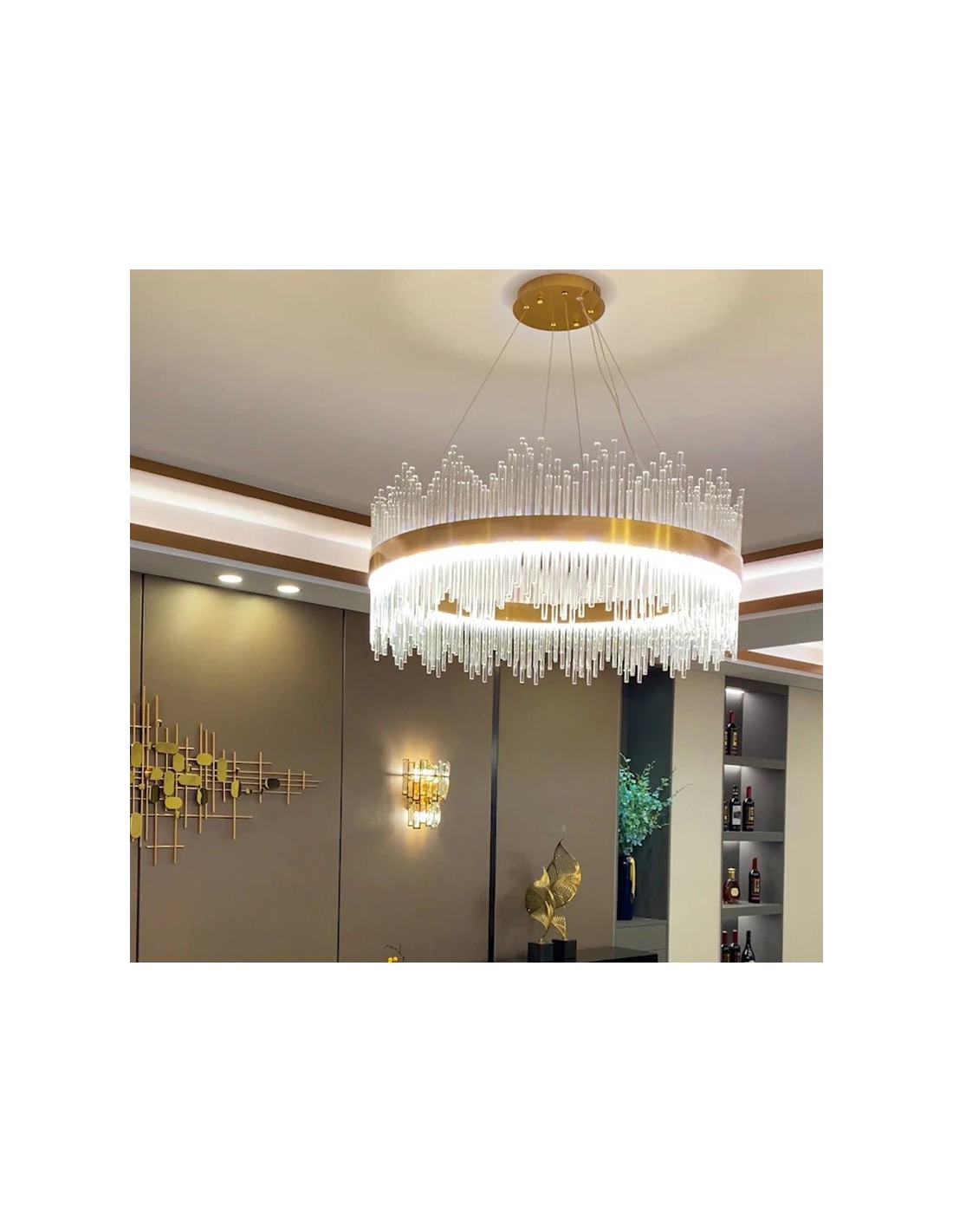 Lámpara de colgar, diseño, aluminio, dorada, acrílico, led. Otros diseños disponibles