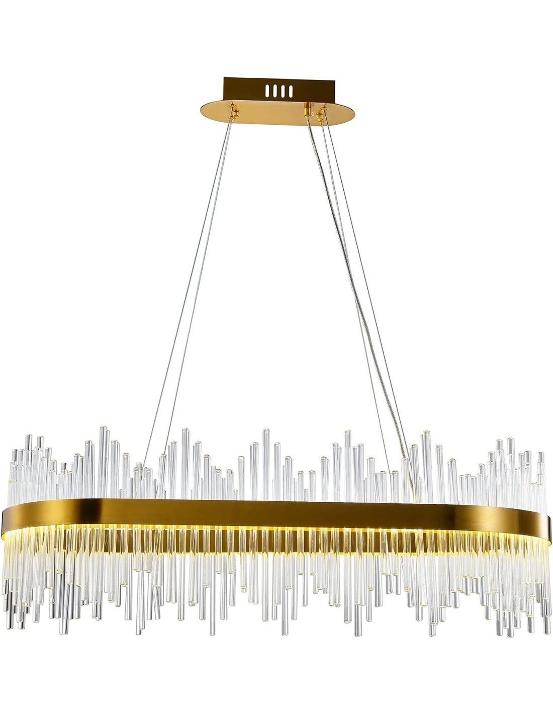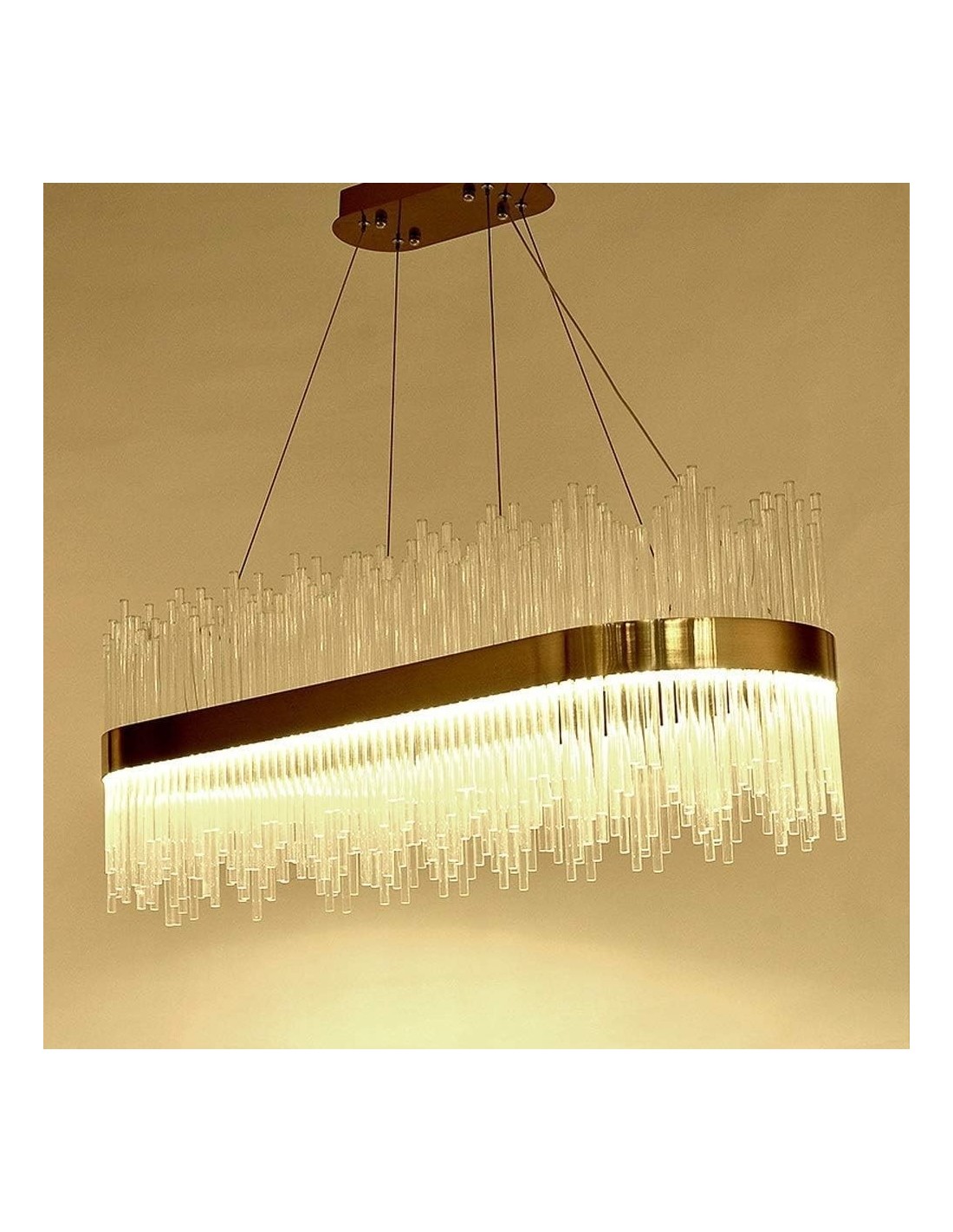 Lámpara WEIRA, colgante, metal dorada, cristal, led