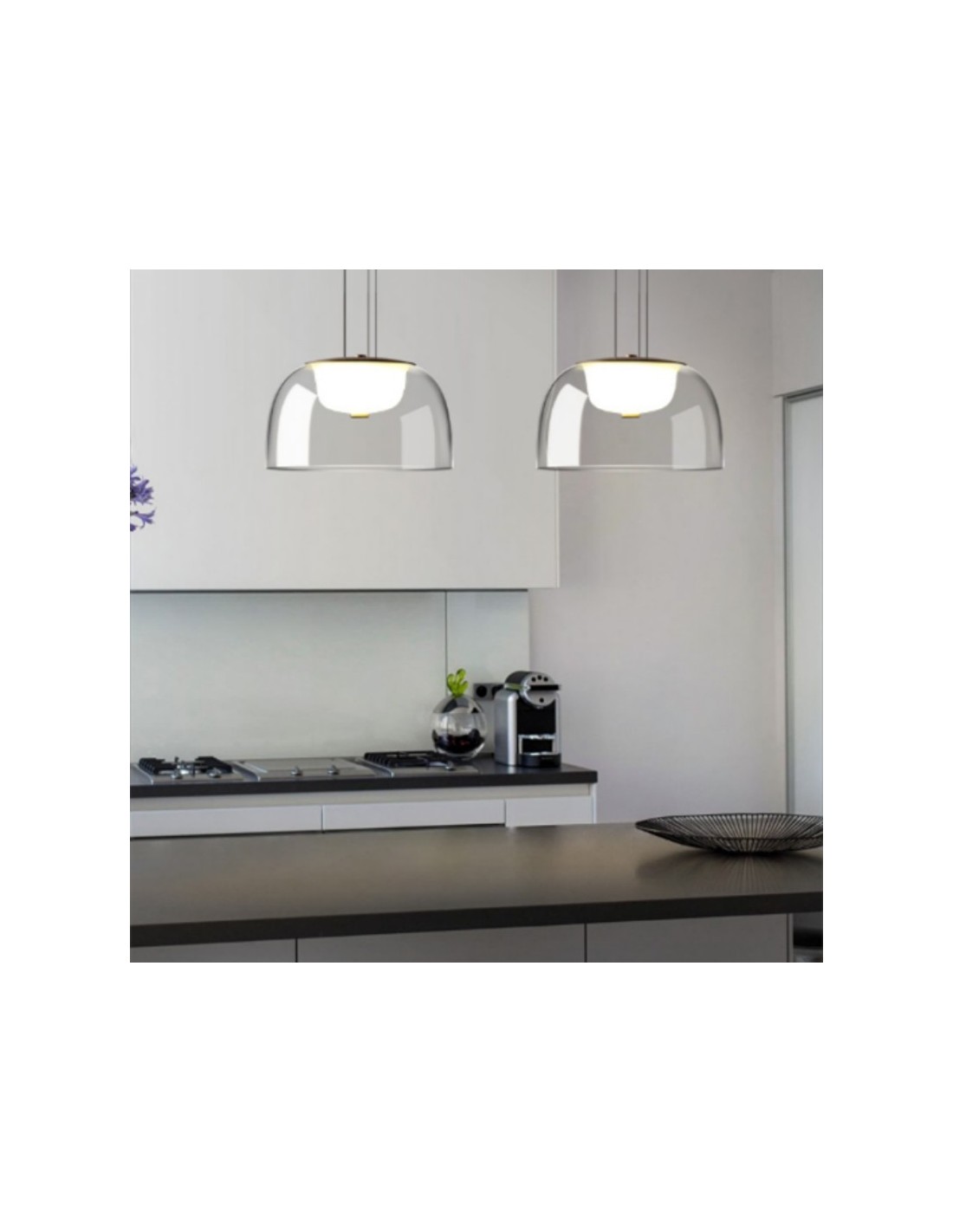 Lámpara de colgar, diseño, metal dorada, tulipas blancas de cristal