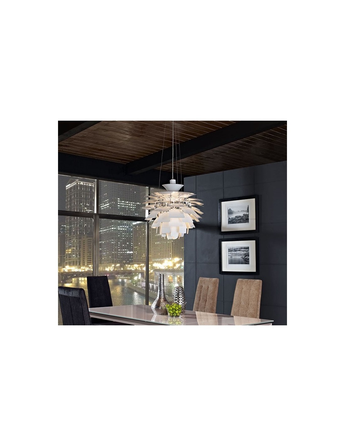 Lámpara de colgar, diseño, aluminio, blanca, 48 cms de diámetro. Otros colores disponibles. Se envía montada.