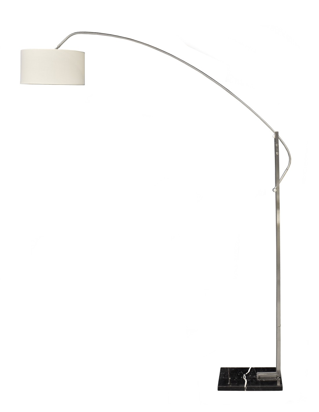Lámpara OMEGA, pie de salón, cromada, mármol, pantalla blanca
