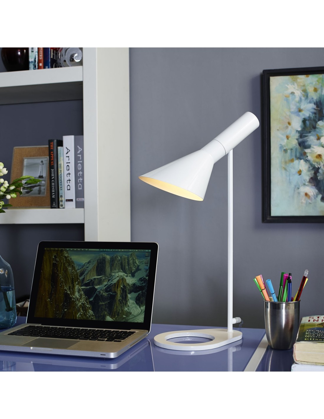 Lámpara de mesa, diseño, blanca, pantalla blanca