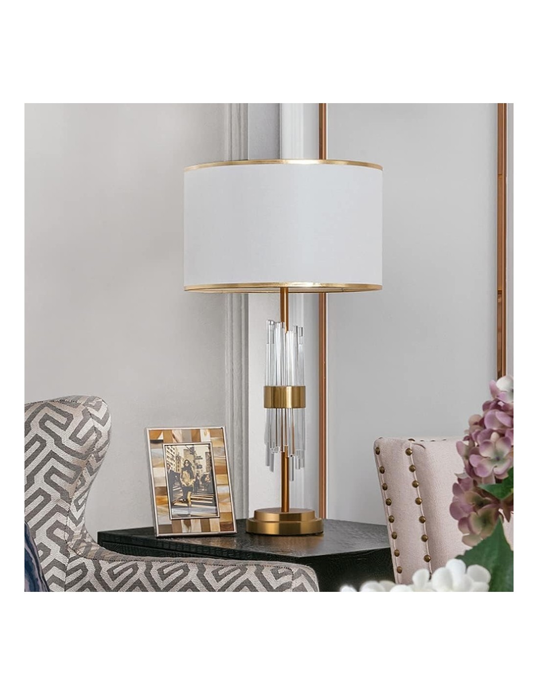 Lámpara de mesa, diseño, metal, cristal, pantalla blanca
