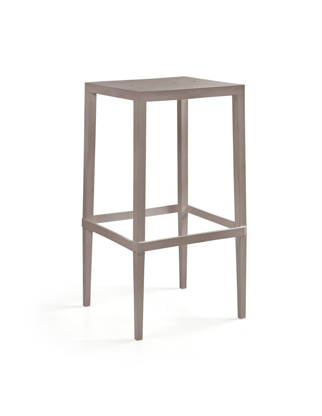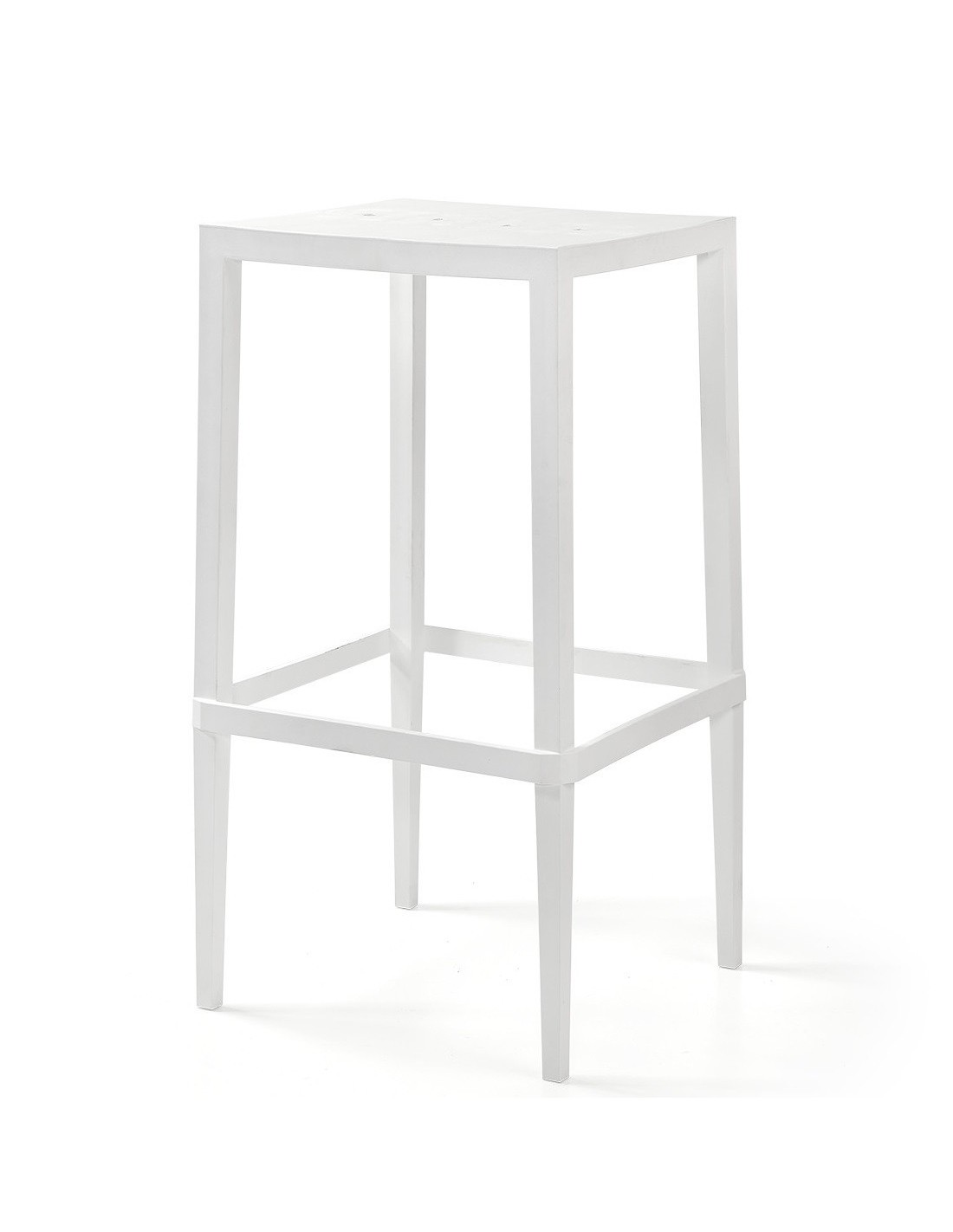 Mesa alta de diseño, apilable, polipropileno reforzado con fibra de vidrio, color blanco. Otros colores disponibles. Sillón, silla y taburete a juego. Uso en interiores o exteriores