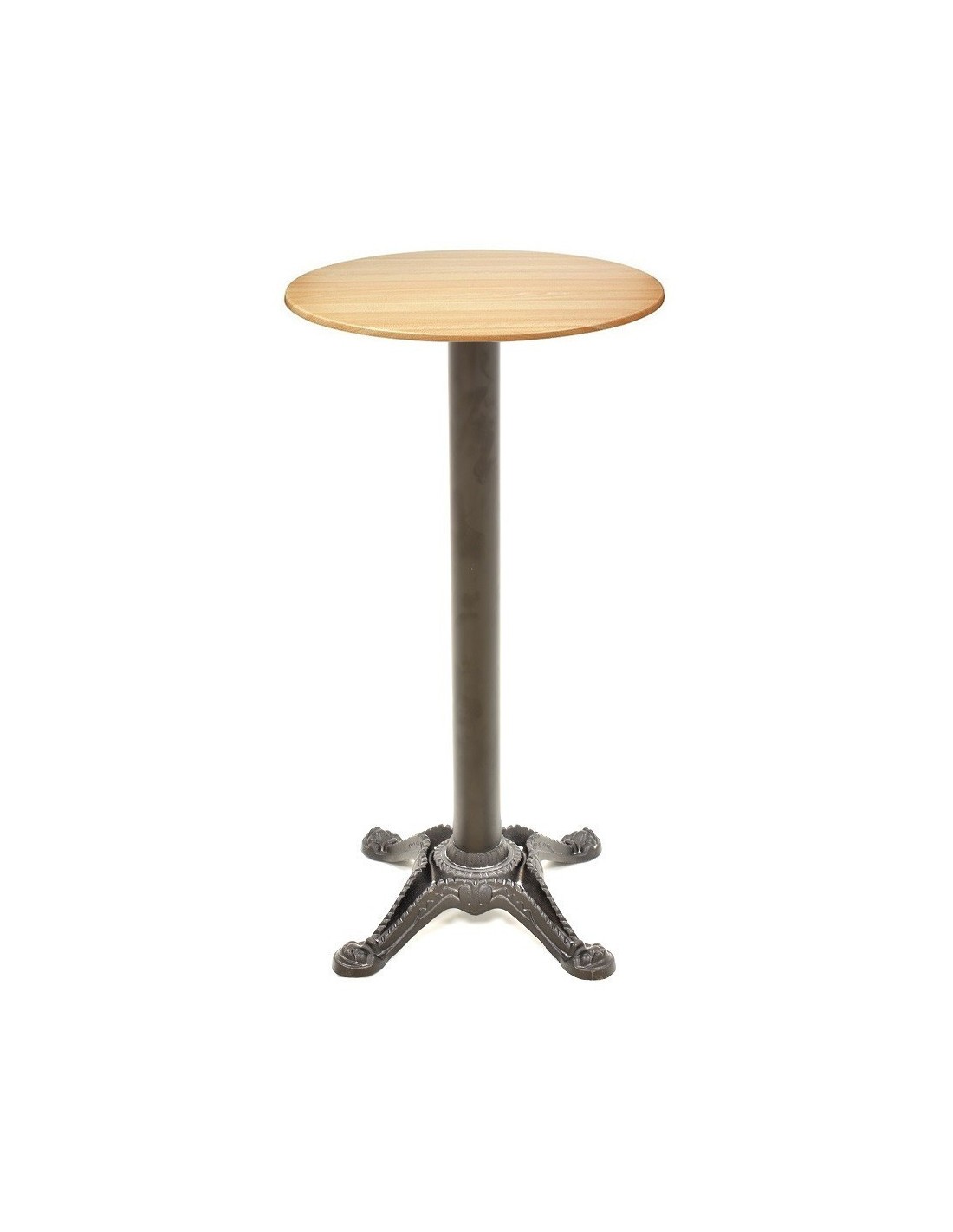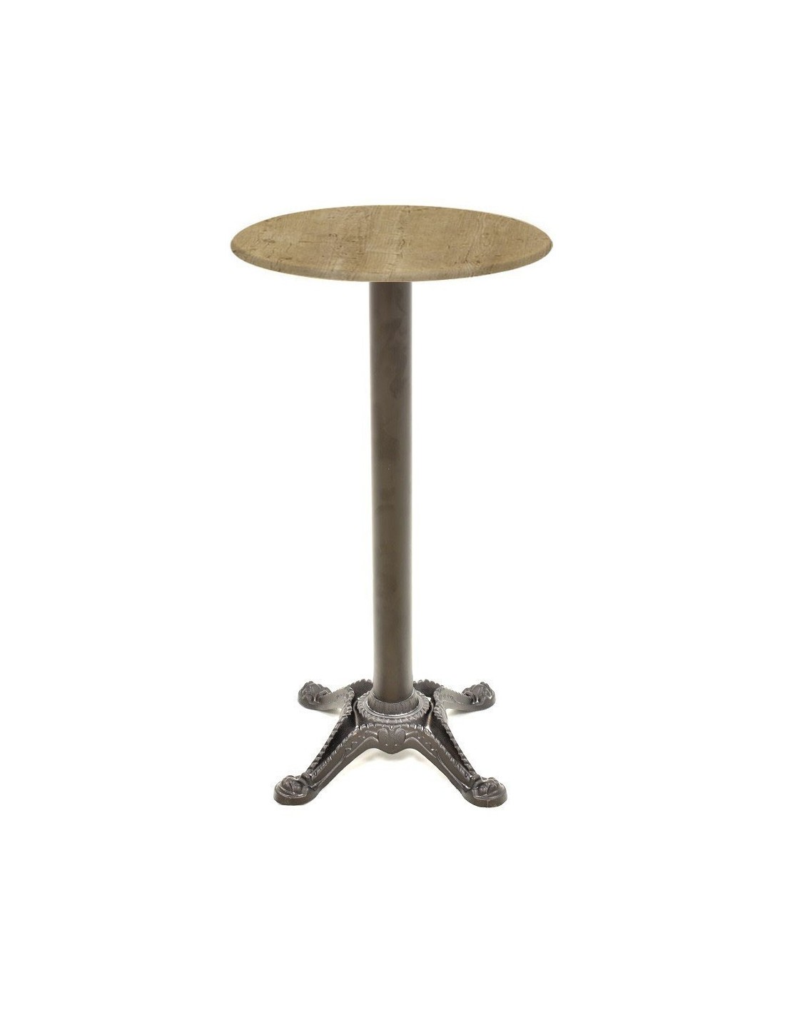 Mesa alta de diseño, multiusos, base de hierro en acabado negro, tapa de 60 cms de diámetro.