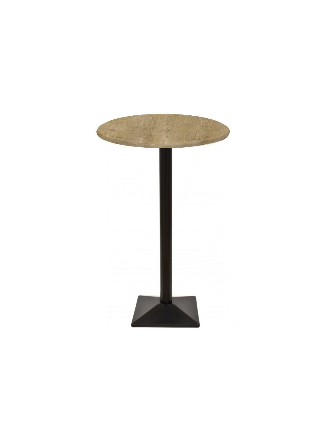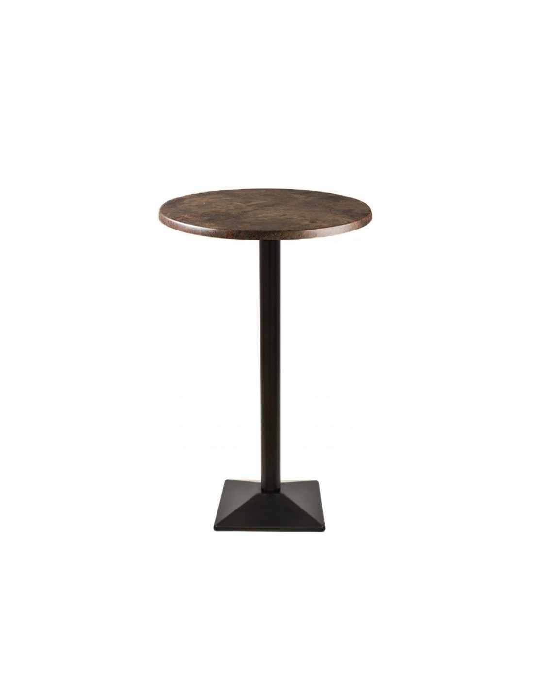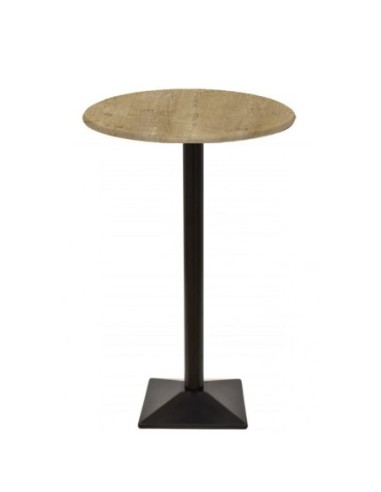 Mesa alta de diseño, multiusos, base de hierro en acabado negro, tapa de 70 cms, a elegir.