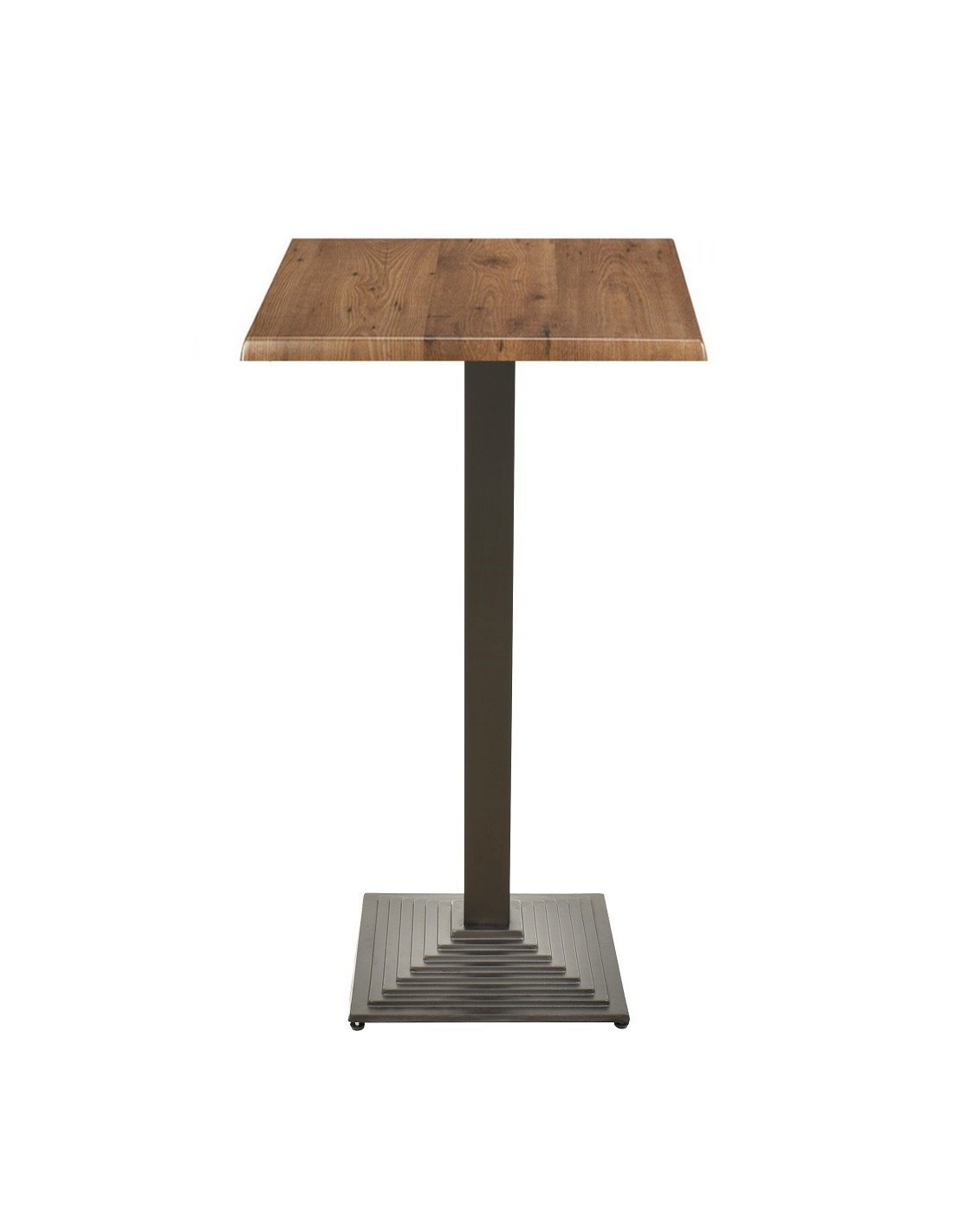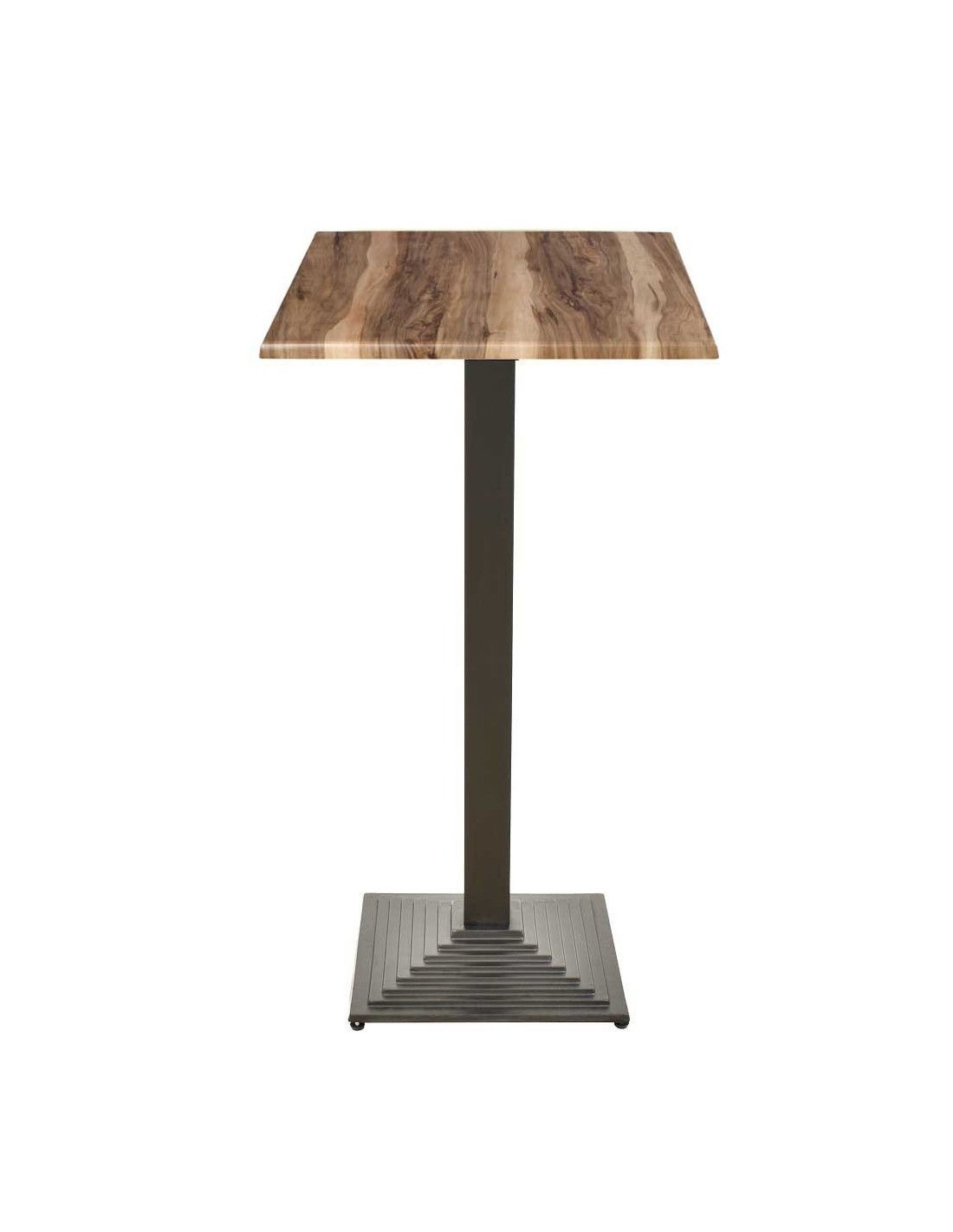 Mesa de diseño, alta, multiusos, base de hierro en acabado negro, tapa de 70 x 70 cms.