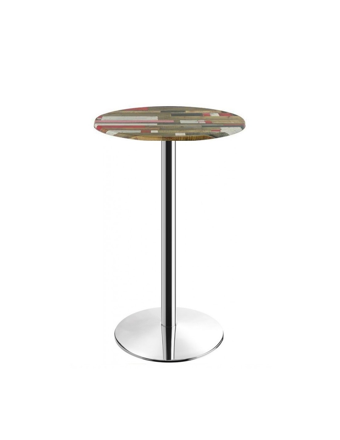 Mesa alta BENAMARA, acero inoxidable, base de 110 cms y tapa 70 cms. Color a elegir