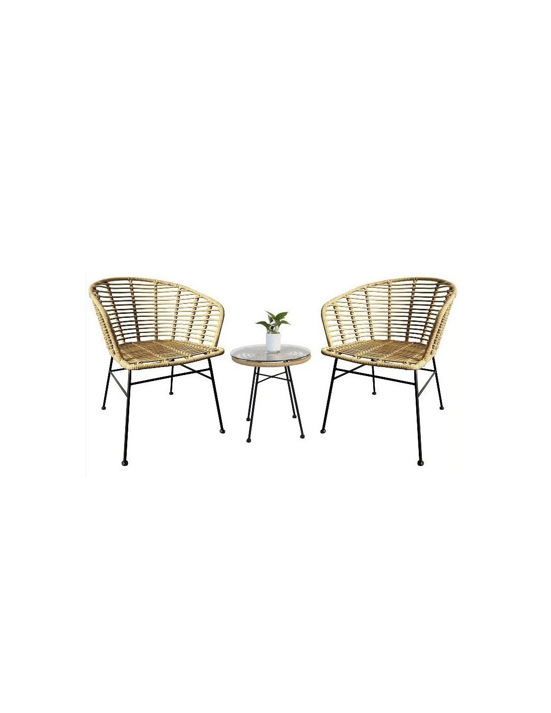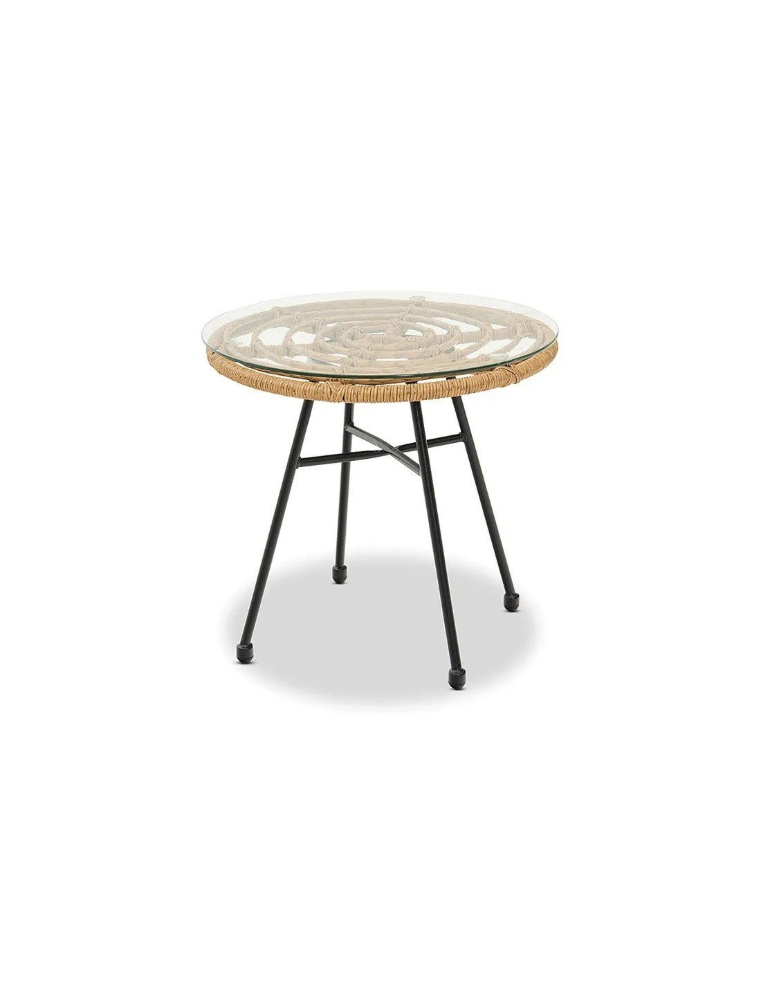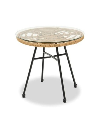 Mesa DEWA, baja, metal, ratán, cristal, 45 cms de diámetro