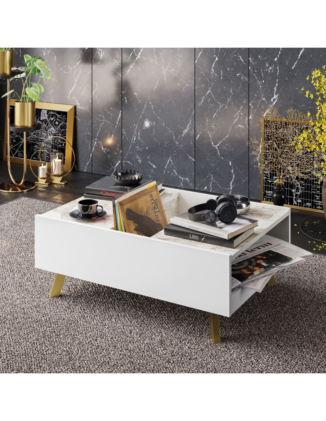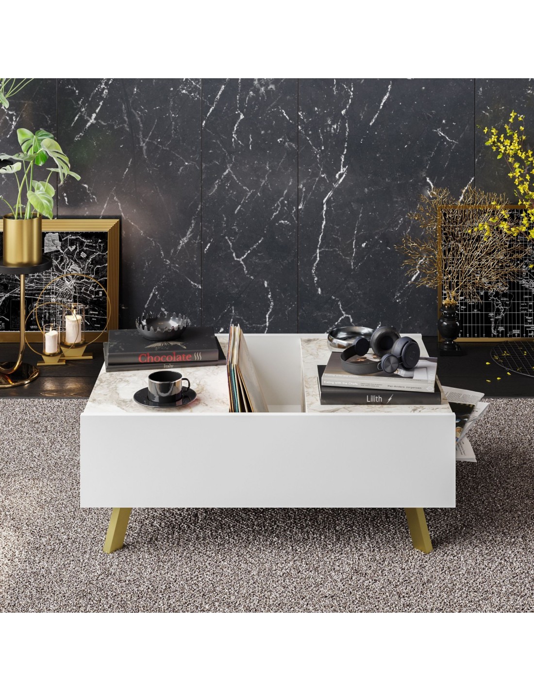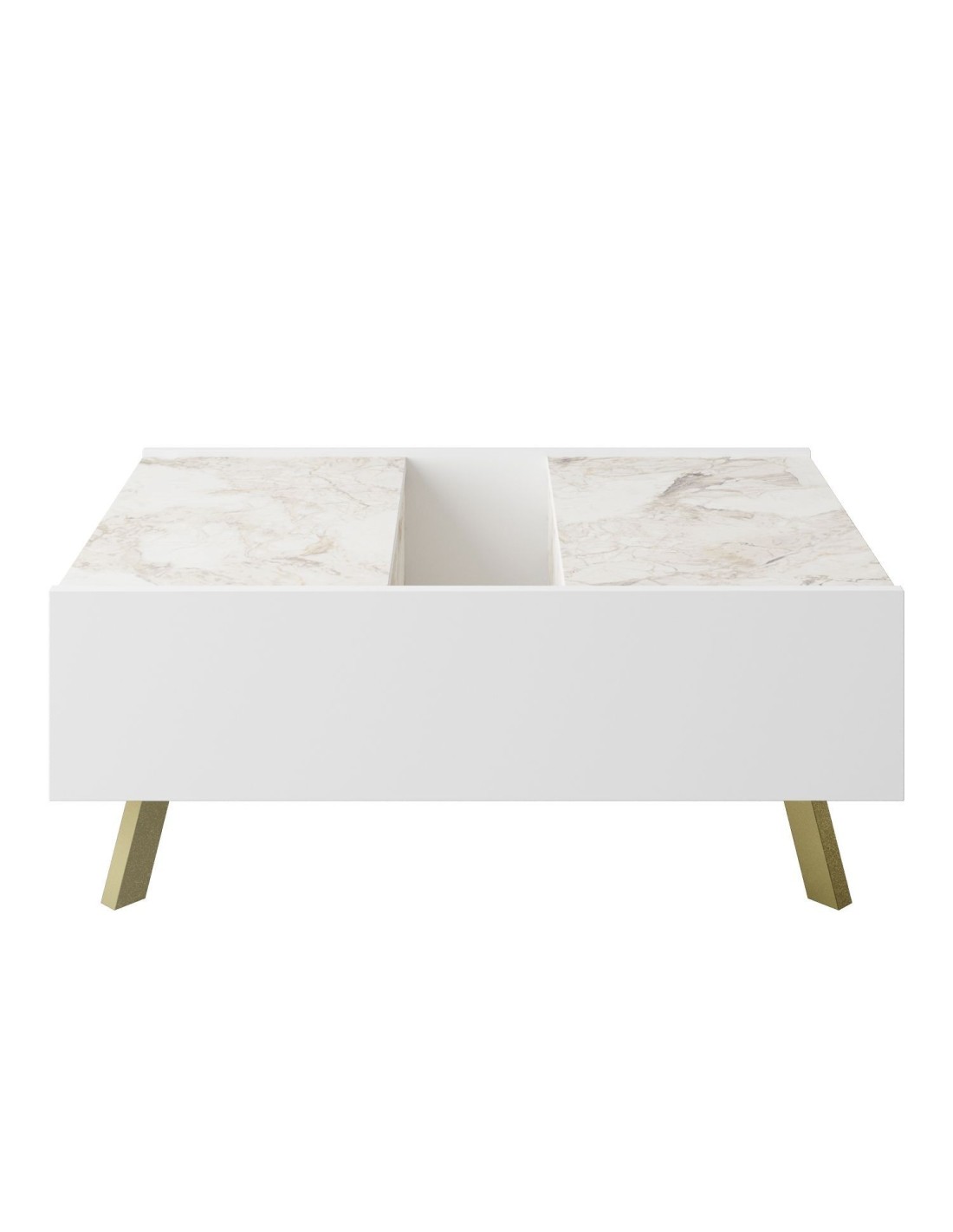 Mesa baja ELOISE, biIaminado mármol blanco, 89,5 cms.