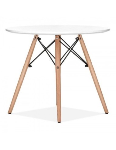 Mesa STAR, base madera, tapa blanca, 100 cms de diámetro