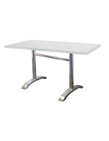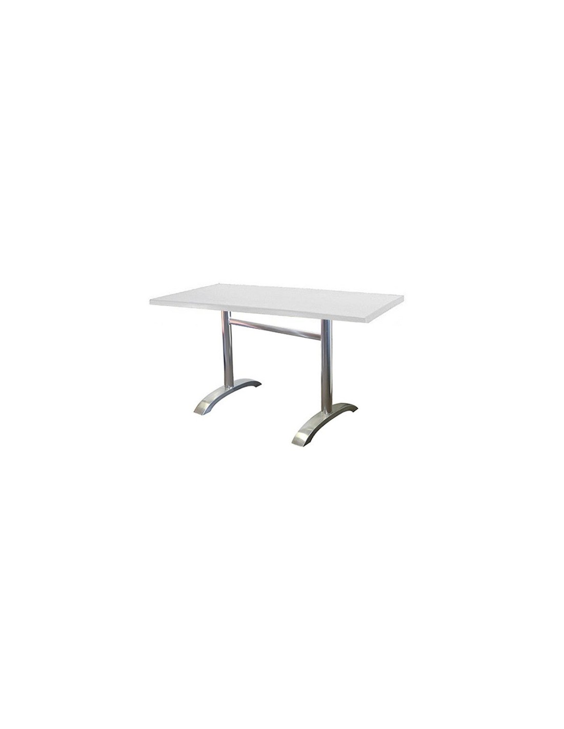 Mesa rectangular con 4 brazos de aluminio- anodizado-. Base de 89 x 56 cms y tapa de 120 x 80 cms, a elegir. Uso interior y exterior.