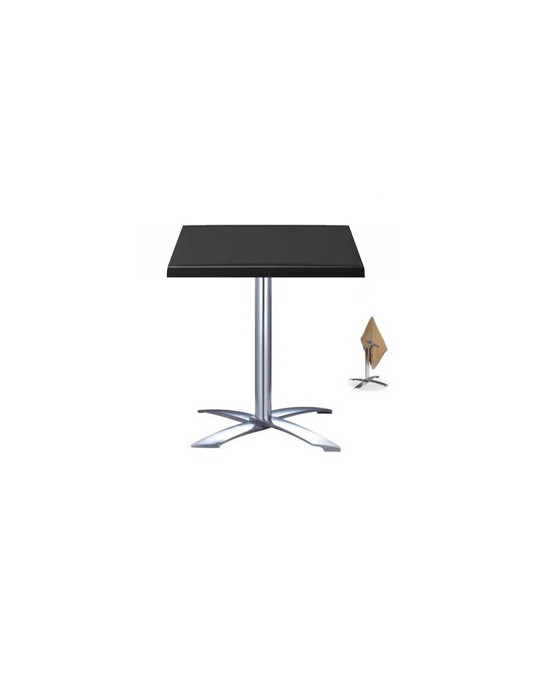 Mesa formada por base de aluminio, abatible, 4 brazos y tapa de 70 x 70 cms. Color a elegir. Uso en exteriores e interiores