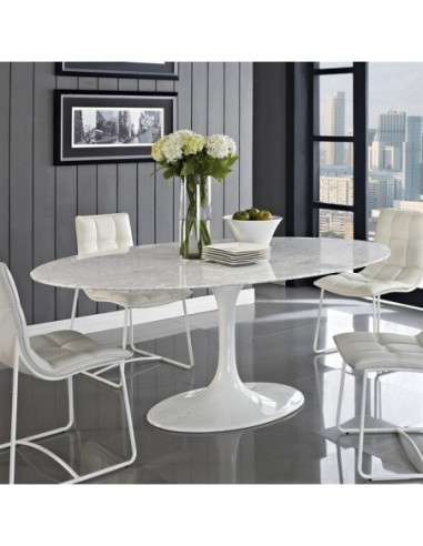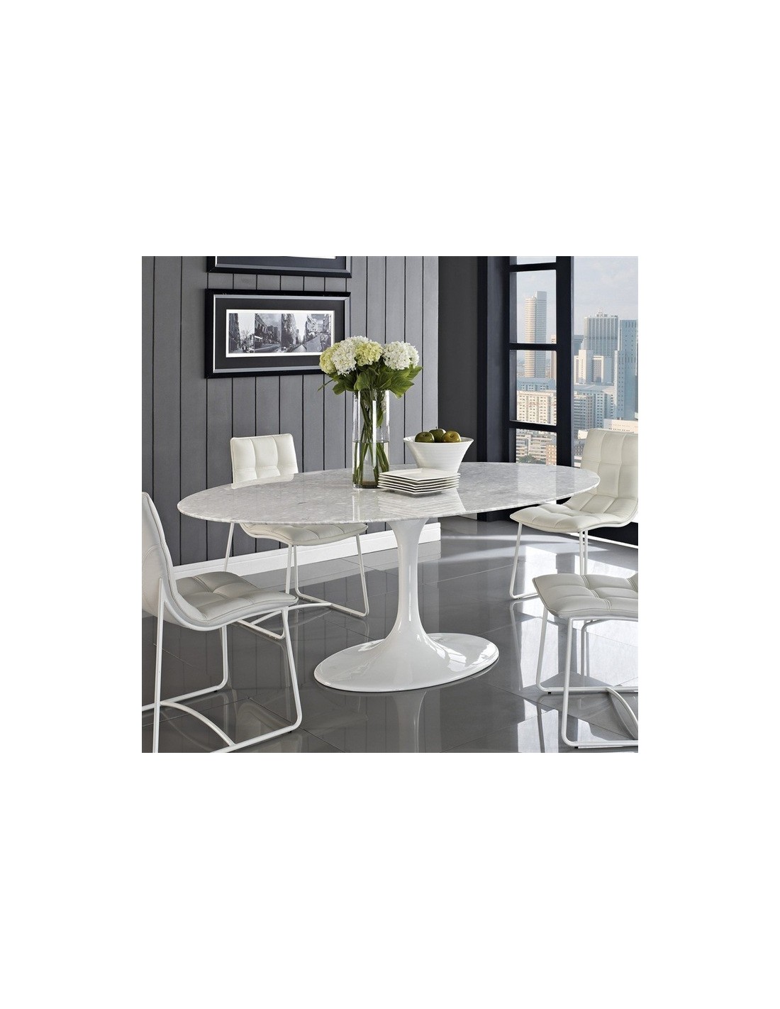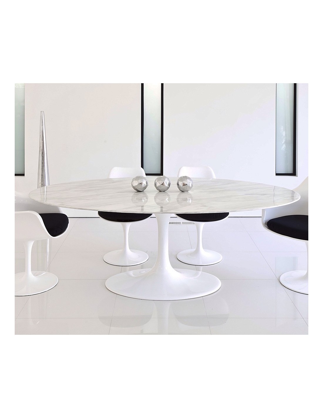 Mesa TUL, oval, fibra de vidrio, mármol blanco 180x108 cms