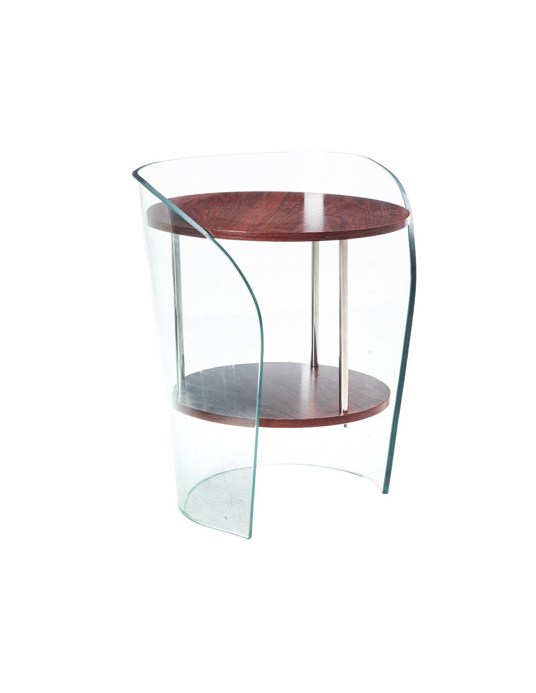 Mesa baja de diseño, estantes de MDF, cristal curvado de 12 mm. de espesor