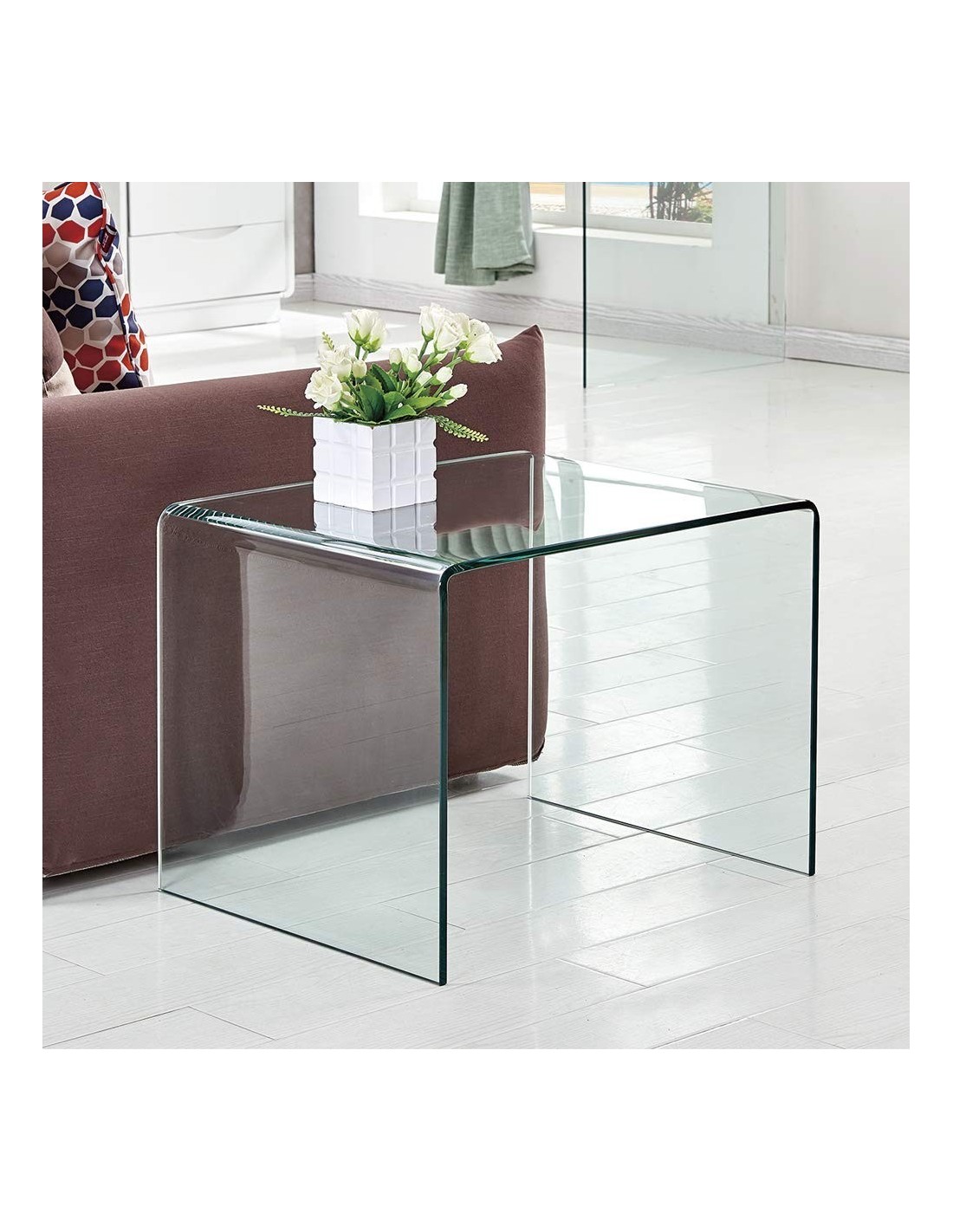Mesa de diseño, multiusos, estructura de acero inoxidable, parte superior con tapa de cristal. Altura regulable de 56 a 91 cms.