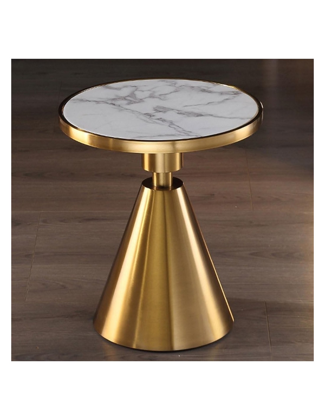 Mesa JASSY BL, baja, dorada, tapa cerámica mármol blanco, 50 cms de diámetro