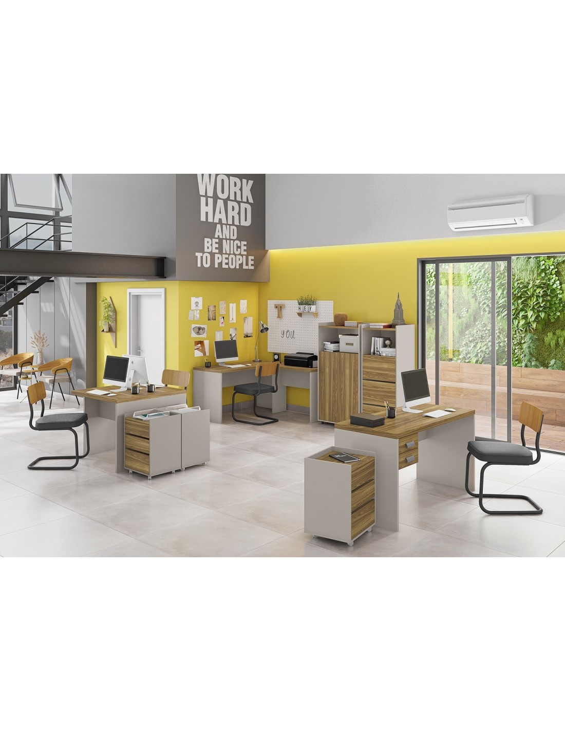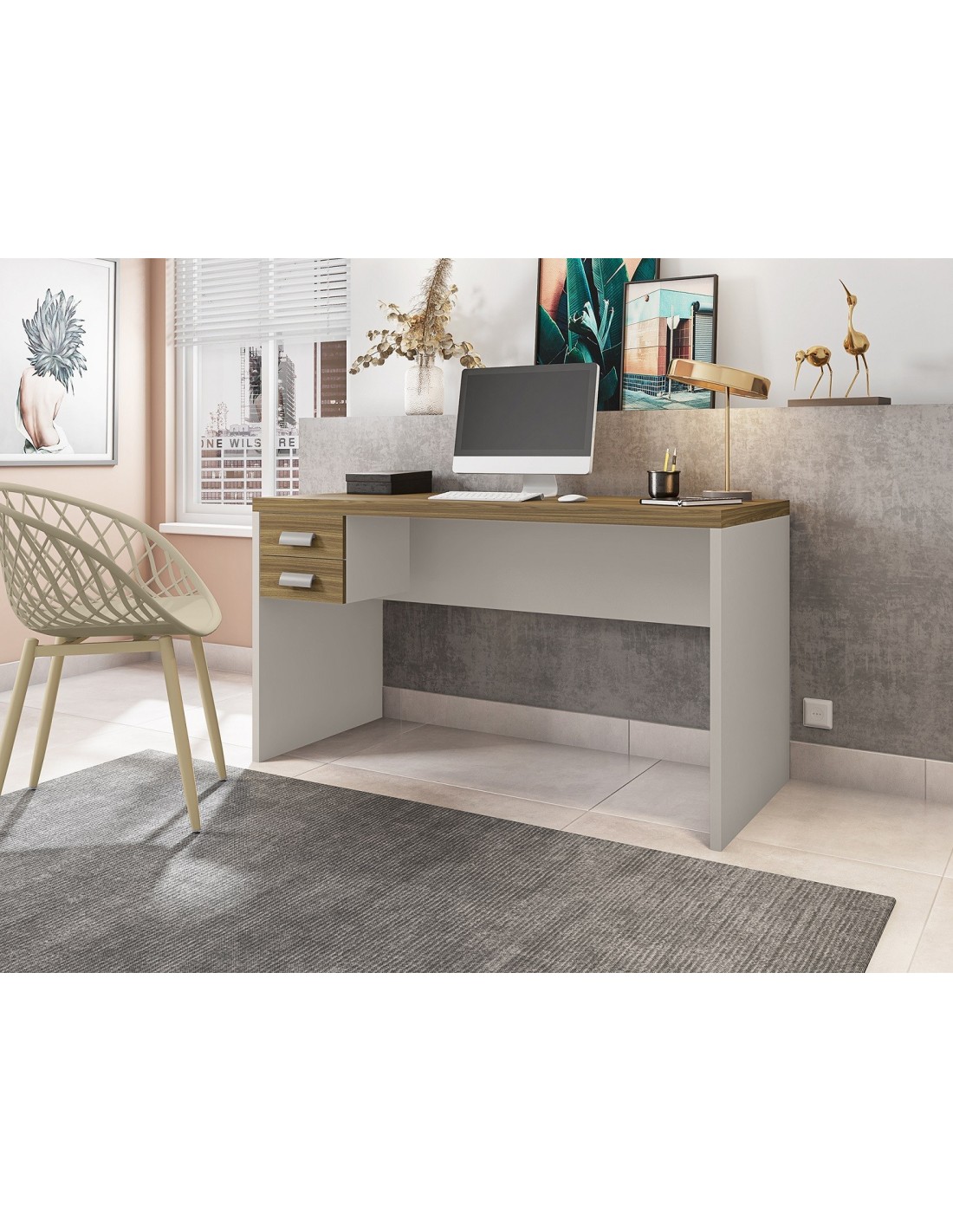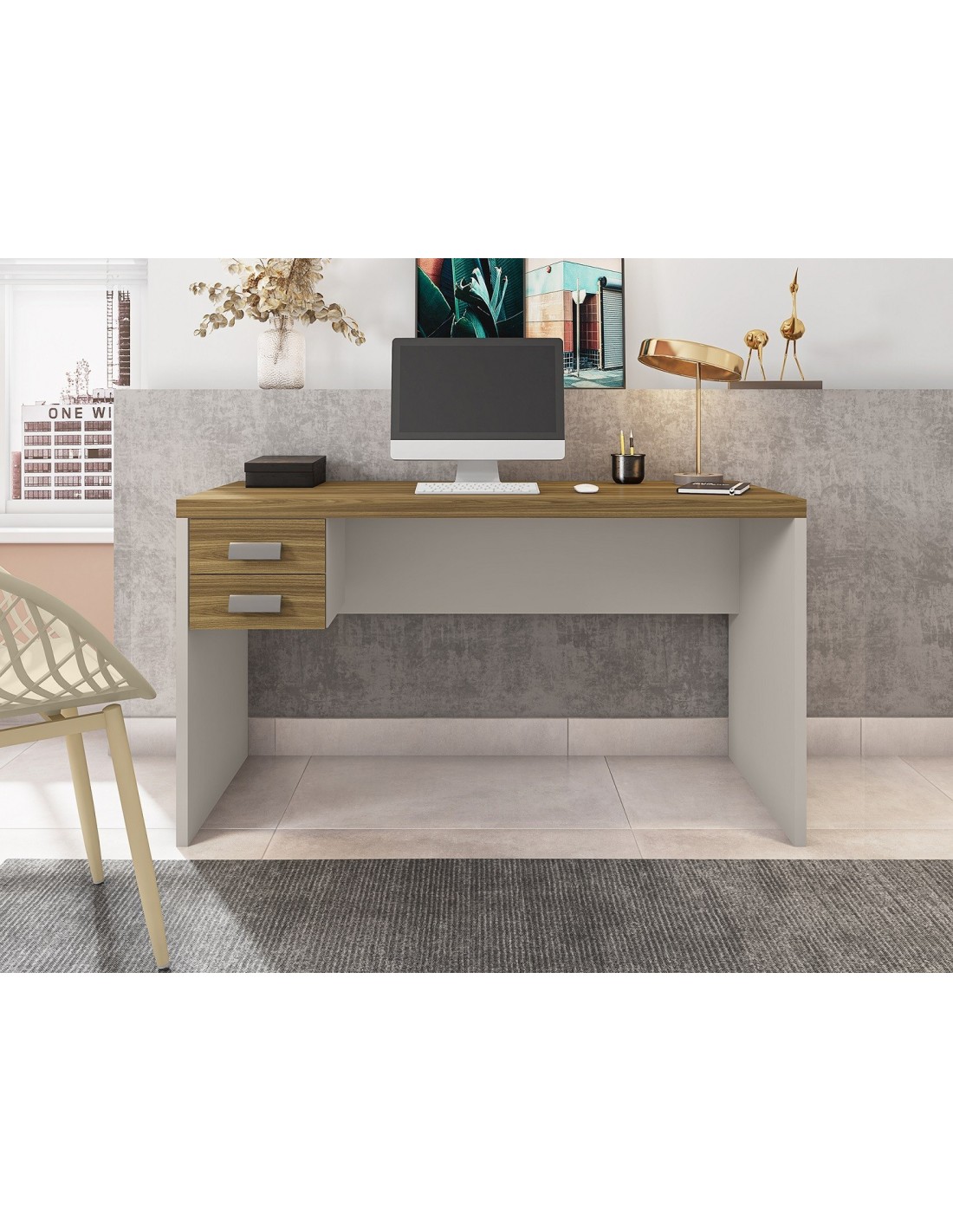 Mesa de oficina STUDIO 136, 2 cajones, bilaminado miel y cacao, 136 x 60 cms