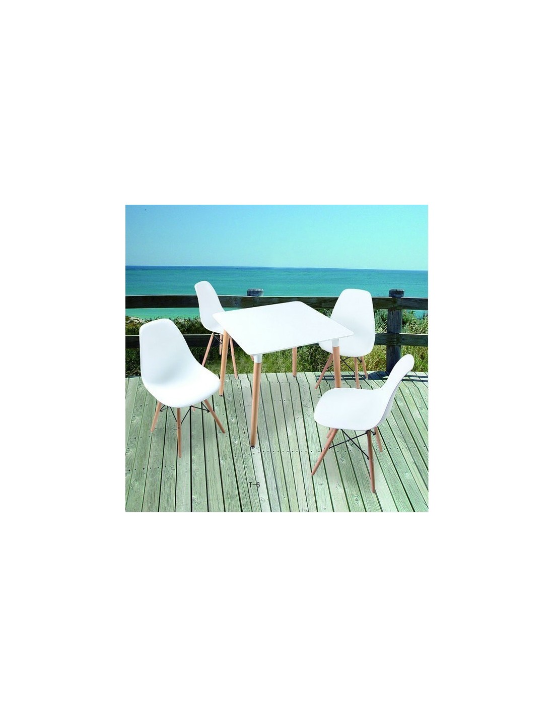 Mesa de diseño, patas de madera de haya maciza, tapa lacada en blanco. Otros colores disponibles. Sillas y sillones a juego