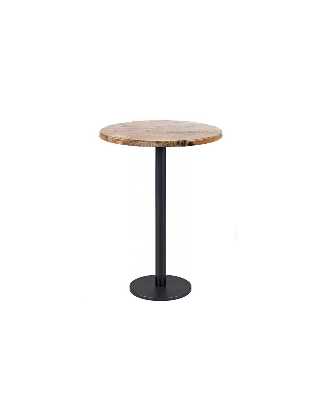 Mesa alta de diseño, multiusos, base de mesa de hierro + composite, revestida en epoxi color negro y tapa de 70 cms de diámetro a elegir.