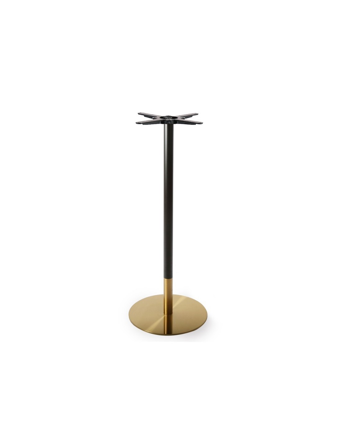 -Base de mesa con plato de acero inoxidable 201, acabado dorado brillante y columna tubular acabado dorado y negro mate..