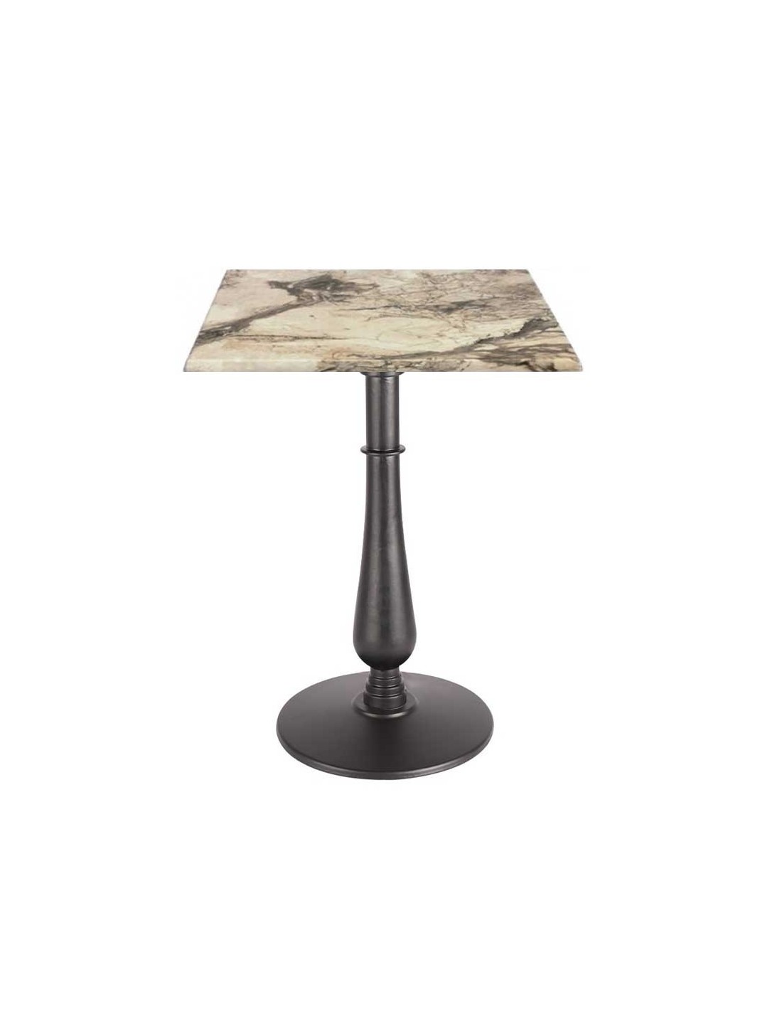 Mesa de diseño, multiusos, base de mesa de hierro fundido, revestida en epoxi color negro mate y tapa de 70x70 cms a elegir.