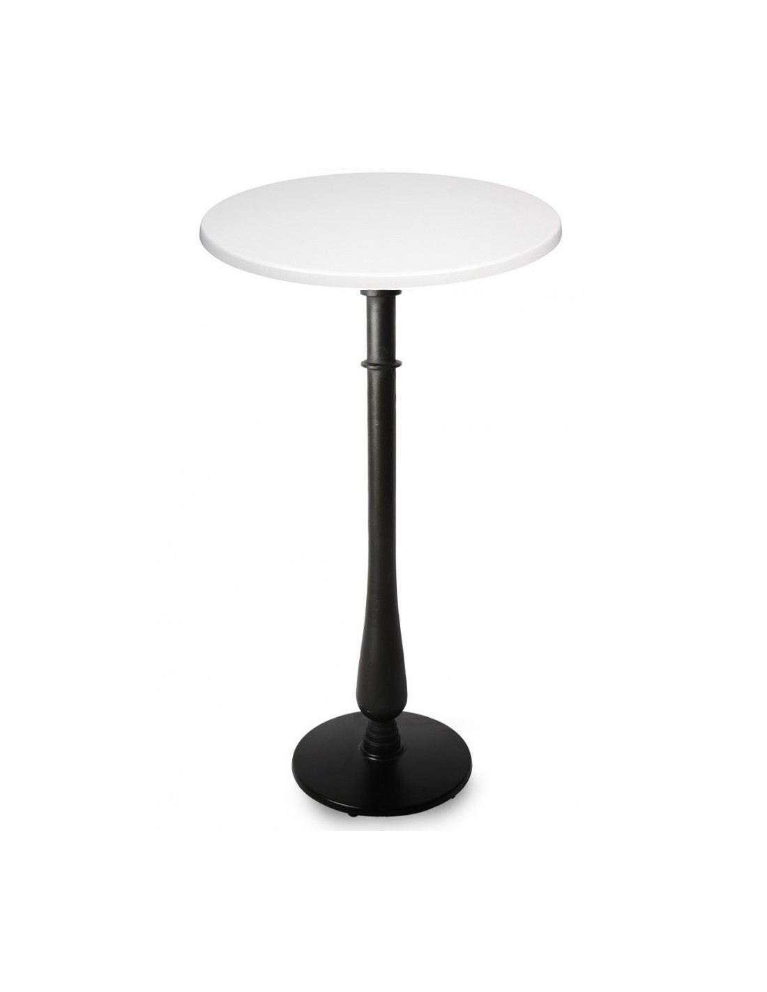 Mesa alta de diseño, multiusos, base de mesa de hierro fundido, revestida en epoxi color negro mate y tapa de 60 cms de diámetro a elegir.