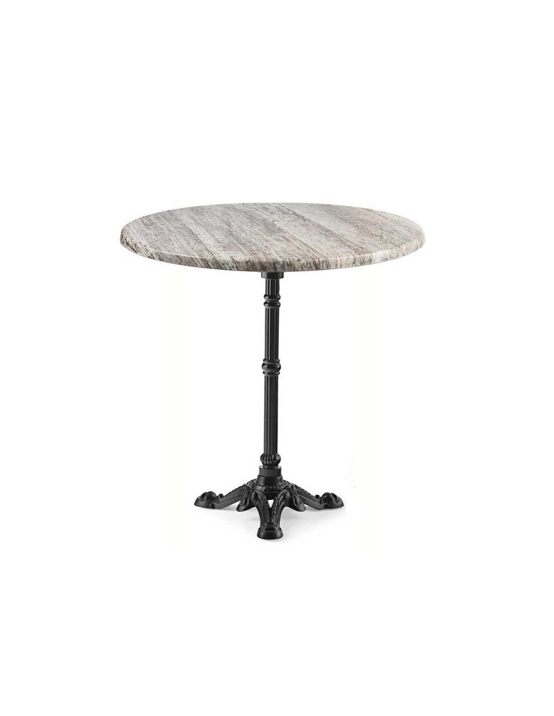 Mesa de fundición de hierro de 3 puntas, revestida con pintura de resina negro mate y tapa de 70 cms de diámetro, a elegir.