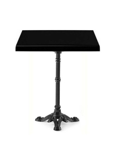 Mesa de fundición de hierro de 3 puntas, revestida con pintura de resina negro mate y tapa de 70x70 cms, a elegir.