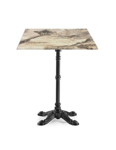 Mesa de fundición de hierro de 4 puntas, revestida con pintura de resina negro mate y tapa de 70x70 cms, a elegir.