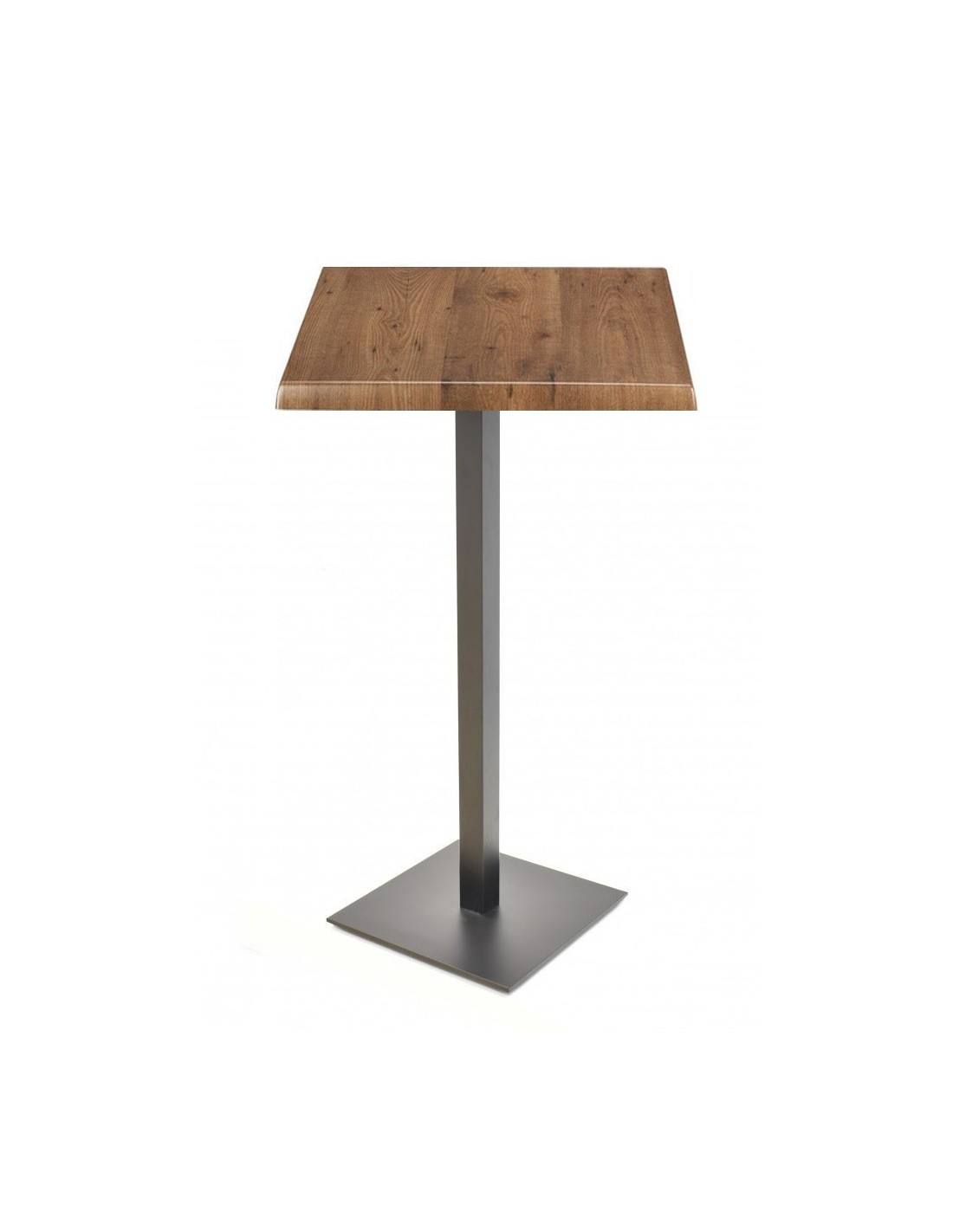Mesa alta de diseño, multiusos, base de acero, revestida con pintura epoxi con acabado color negro y tapa de 70x70 cms, a elegir.
