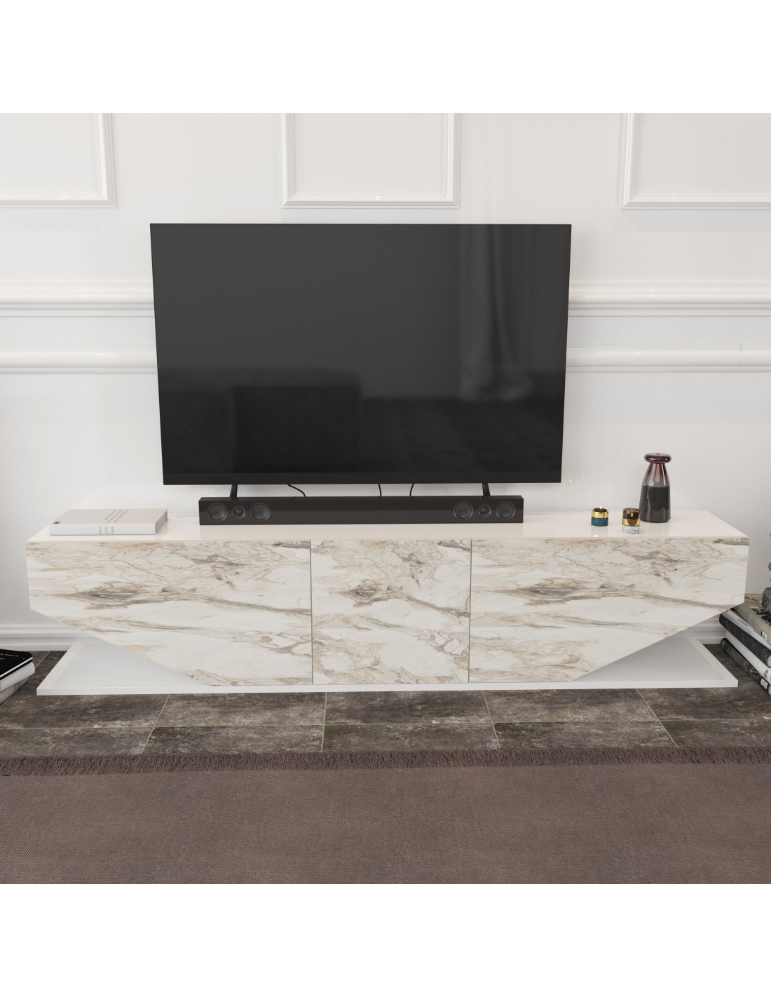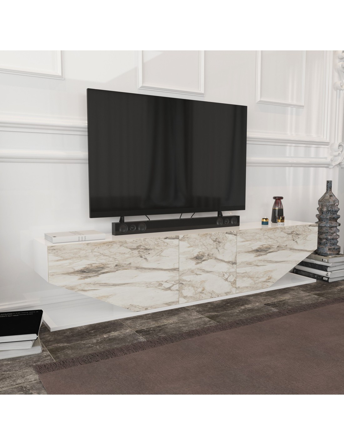 Mueble de TV VIOLET, biIaminado mármol blanco, 180 cms.