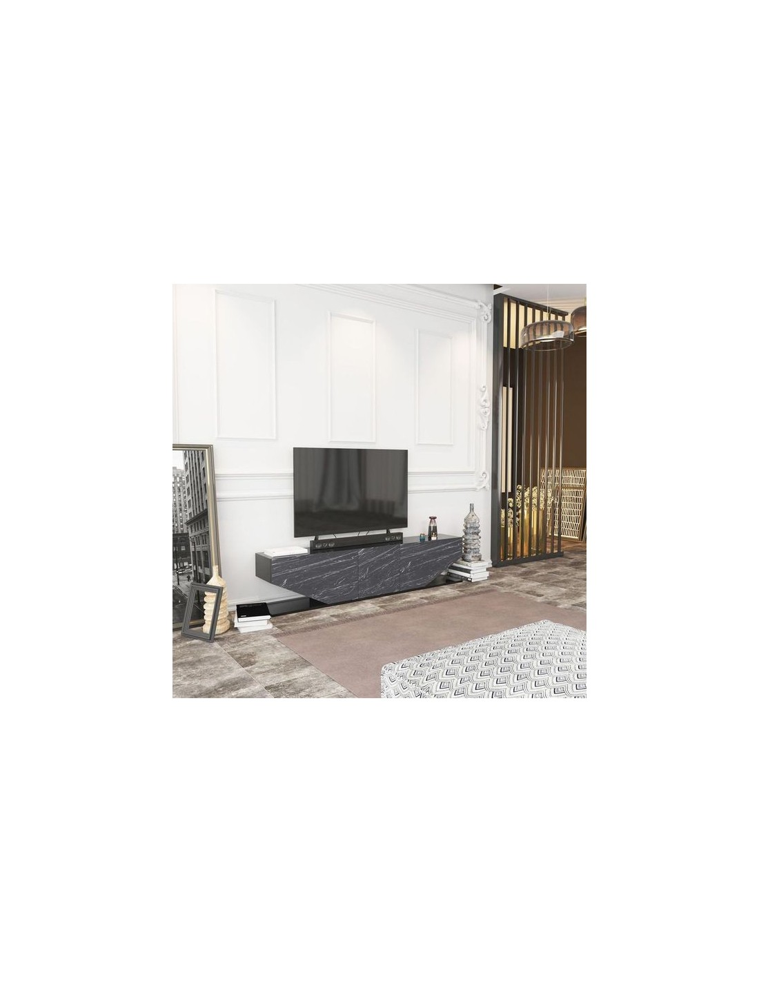 Mueble de TV VIOLET, biIaminado mármol negro, 180 cms.
