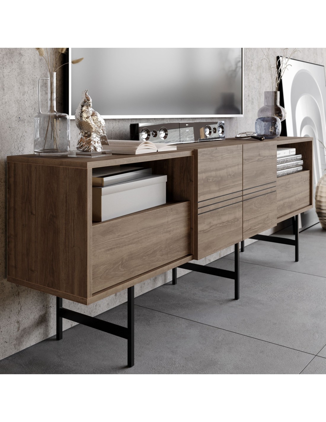Mueble de TV SIMON, biIaminado nogal, 180 cms.